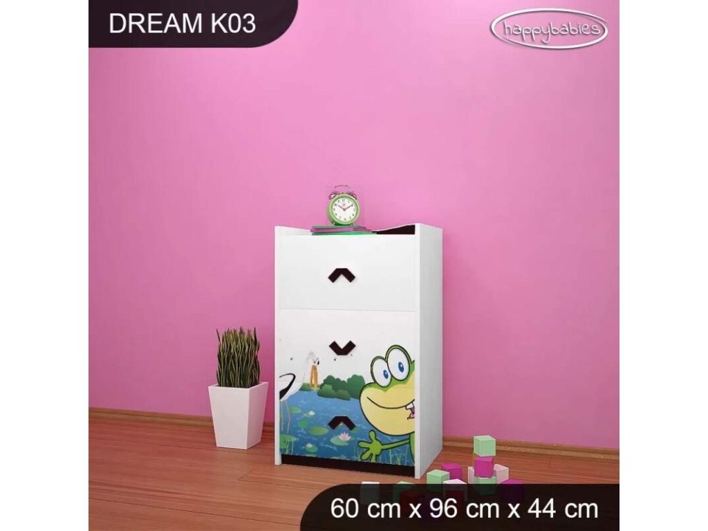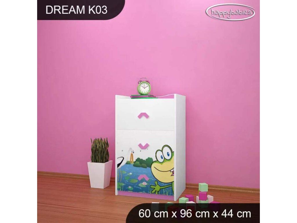 Dětské komody patří k základní výbavě každého pokojíčku. Komody jsou velmi praktické a můžeme je použít jak na oblečení pro děti, tak na hračky nebo knížky. Komoda obsahuje 3 šuplíky. Materiál: lamino 18 mm Barva: růžová, bílá, wenge, hruška, zelená, modrá Rozměr: 60 cm x 96 cm x 44 cm Ve stejném motivu si můžete zakoupit také skříň, regál, knihovnu, psací stůl, noční stolek, box na hračky nebo poličku.Buďte první, kdo napíše příspěvek k této položce.