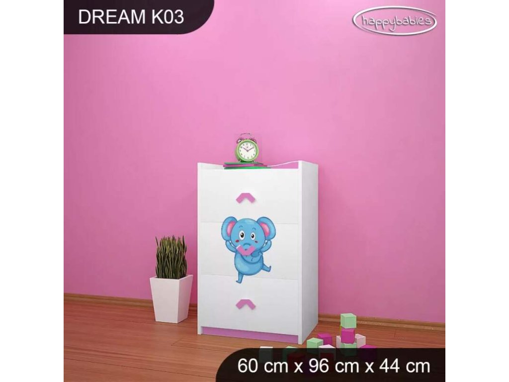 Dětské komody patří k základní výbavě každého pokojíčku. Komody jsou velmi praktické a můžeme je použít jak na oblečení pro děti, tak na hračky nebo knížky. Komoda obsahuje 3 šuplíky. Materiál: lamino 18 mm Barva: růžová, bílá, wenge, hruška, zelená, modrá Rozměr: 60 cm x 96 cm x 44 cm Ve stejném motivu si můžete zakoupit také skříň, regál, knihovnu, psací stůl, noční stolek, box na hračky nebo poličku.Buďte první, kdo napíše příspěvek k této položce.
