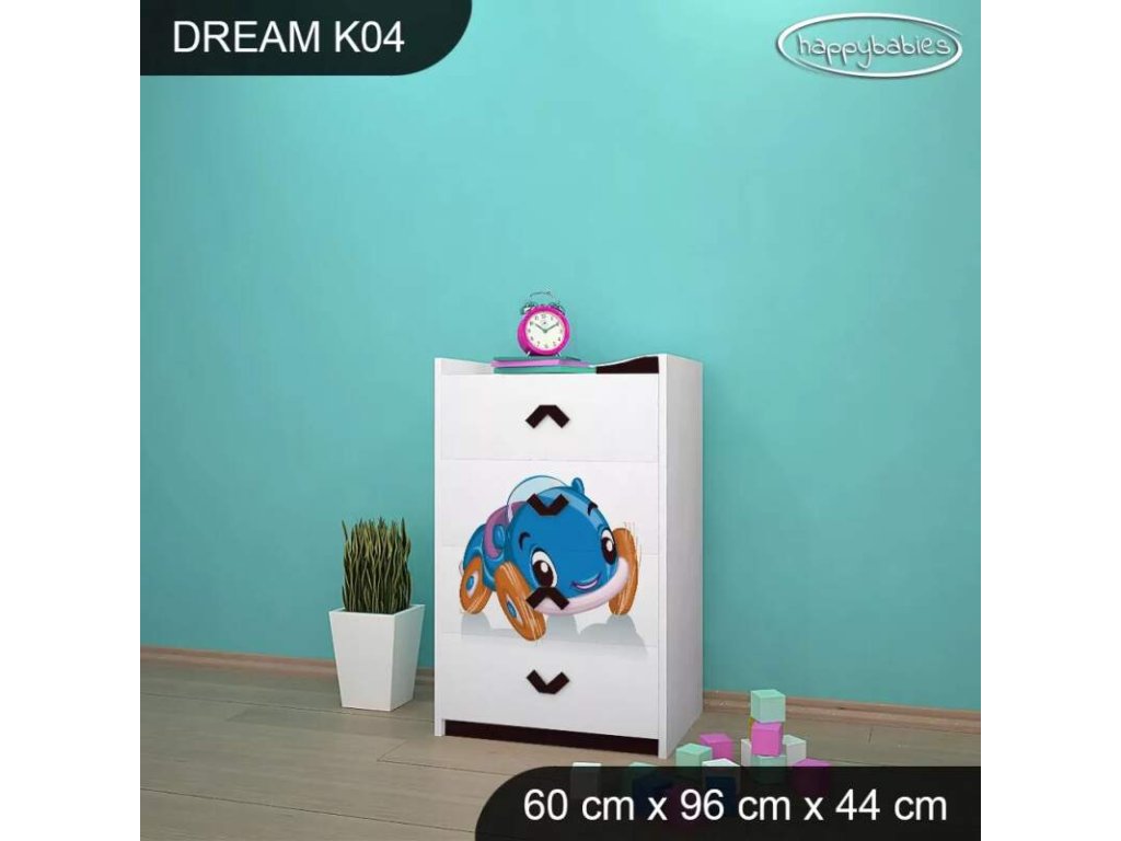 Dětské komody patří k základní výbavě každého pokojíčku. Komody jsou velmi praktické a můžeme je použít jak na oblečení pro děti, tak na hračky nebo knížky. Komoda obsahuje 4 šuplíky. Materiál: lamino 18 mm Barva: růžová, bílá, wenge, hruška, zelená, modrá Rozměr: 60 cm x 96 cm x 44 cm Ve stejném motivu si můžete zakoupit také skříň, regál, knihovnu, psací stůl, noční stolek, box na hračky nebo poličku.Buďte první, kdo napíše příspěvek k této položce.