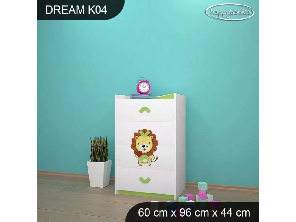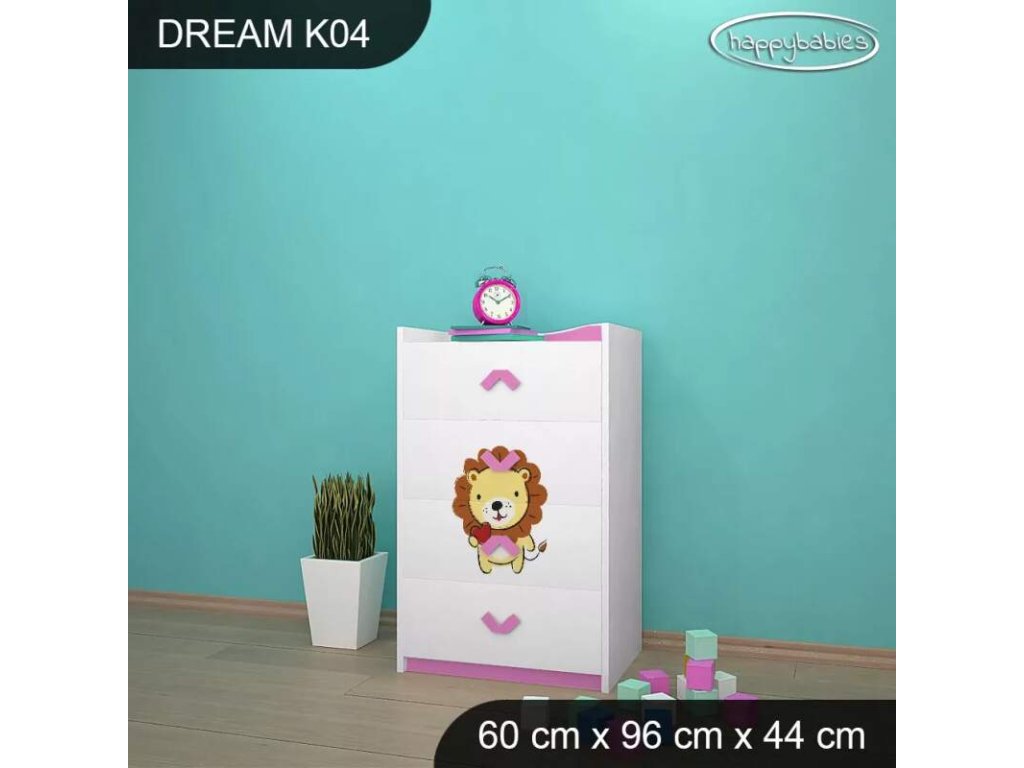 Dětské komody patří k základní výbavě každého pokojíčku. Komody jsou velmi praktické a můžeme je použít jak na oblečení pro děti, tak na hračky nebo knížky. Komoda obsahuje 4 šuplíky. Materiál: lamino 18 mm Barva: růžová, bílá, wenge, hruška, zelená, modrá Rozměr: 60 cm x 96 cm x 44 cm Ve stejném motivu si můžete zakoupit také skříň, regál, knihovnu, psací stůl, noční stolek, box na hračky nebo poličku.Buďte první, kdo napíše příspěvek k této položce.