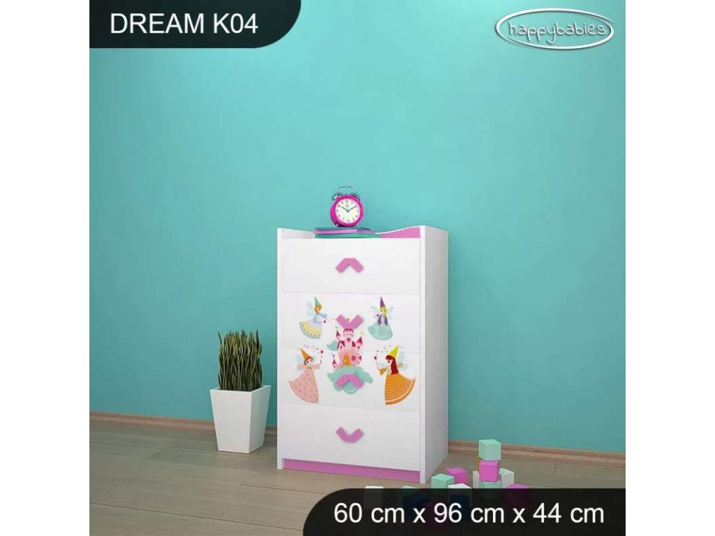 Dětské komody patří k základní výbavě každého pokojíčku. Komody jsou velmi praktické a můžeme je použít jak na oblečení pro děti, tak na hračky nebo knížky. Komoda obsahuje 4 šuplíky. Materiál: lamino 18 mm Barva: růžová, bílá, wenge, hruška, zelená, modrá Rozměr: 60 cm x 96 cm x 44 cm Ve stejném motivu si můžete zakoupit také skříň, regál, knihovnu, psací stůl, noční stolek, box na hračky nebo poličku.Buďte první, kdo napíše příspěvek k této položce.