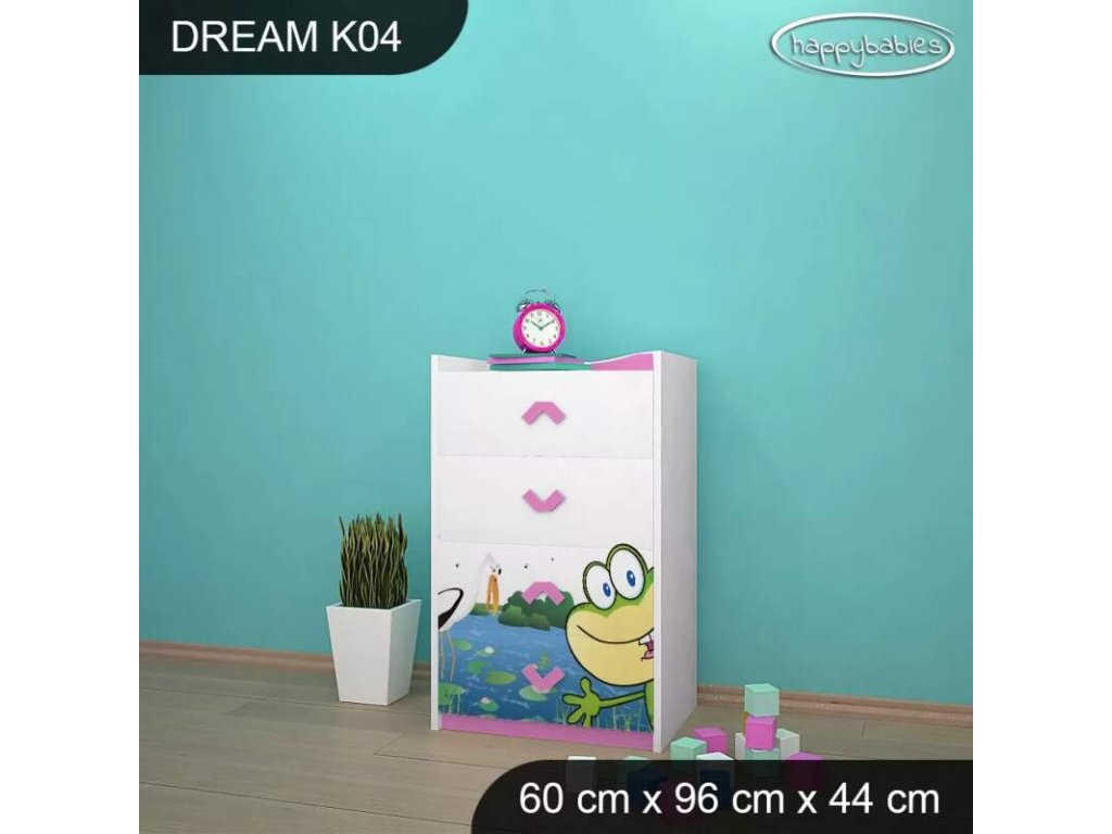 Dětské komody patří k základní výbavě každého pokojíčku. Komody jsou velmi praktické a můžeme je použít jak na oblečení pro děti, tak na hračky nebo knížky. Komoda obsahuje 4 šuplíky. Materiál: lamino 18 mm Barva: růžová, bílá, wenge, hruška, zelená, modrá Rozměr: 60 cm x 96 cm x 44 cm Ve stejném motivu si můžete zakoupit také skříň, regál, knihovnu, psací stůl, noční stolek, box na hračky nebo poličku.Buďte první, kdo napíše příspěvek k této položce.