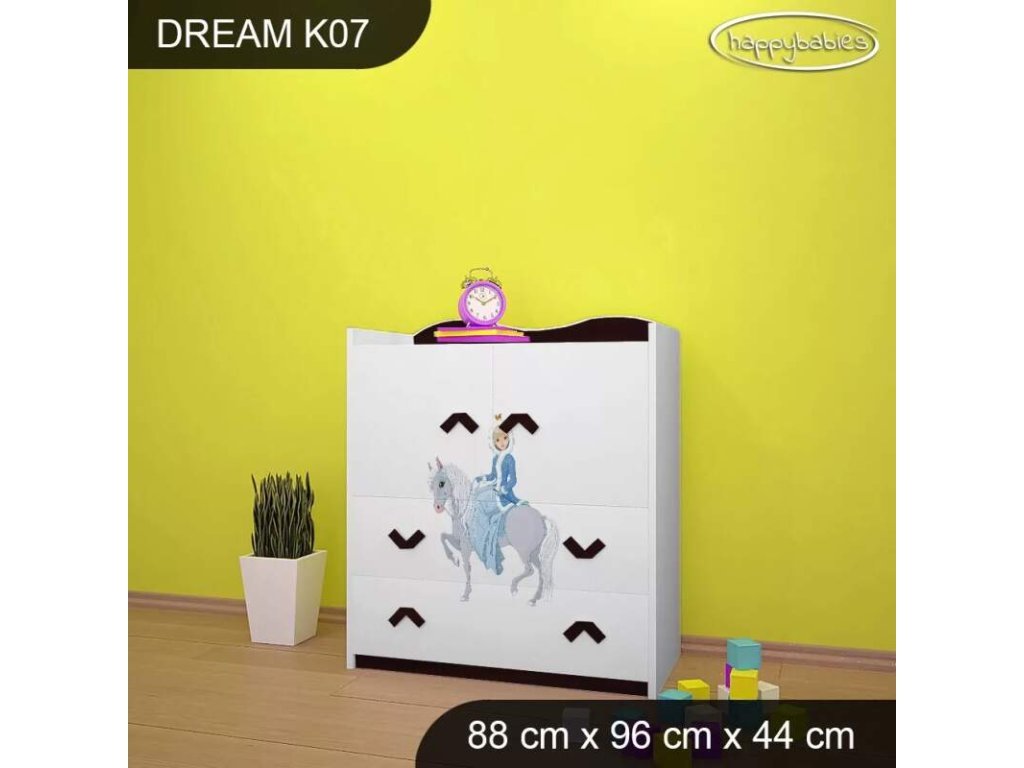 Dětské komody patří k základní výbavě každého pokojíčku. Komody jsou velmi praktické a můžeme je použít jak na oblečení pro děti, tak na hračky nebo knížky. Materiál: lamino 18 mm Barva: růžová, bílá, wenge, hruška, zelená, modrá Rozměr: 88 cm x 96 cm x 44 cm Ve stejném motivu si můžete zakoupit také skříň, regál, knihovnu, psací stůl, noční stolek, box na hračky nebo poličku.Buďte první, kdo napíše příspěvek k této položce.