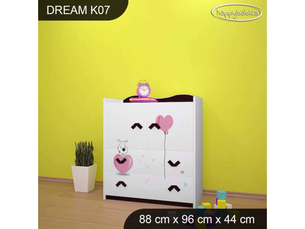 Dětské komody patří k základní výbavě každého pokojíčku. Komody jsou velmi praktické a můžeme je použít jak na oblečení pro děti, tak na hračky nebo knížky. Materiál: lamino 18 mm Barva: růžová, bílá, wenge, hruška, zelená, modrá Rozměr: 88 cm x 96 cm x 44 cm Ve stejném motivu si můžete zakoupit také skříň, regál, knihovnu, psací stůl, noční stolek, box na hračky nebo poličku.Buďte první, kdo napíše příspěvek k této položce.