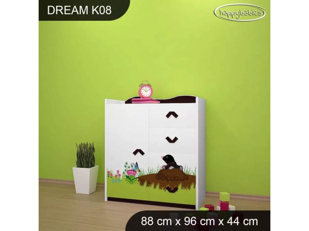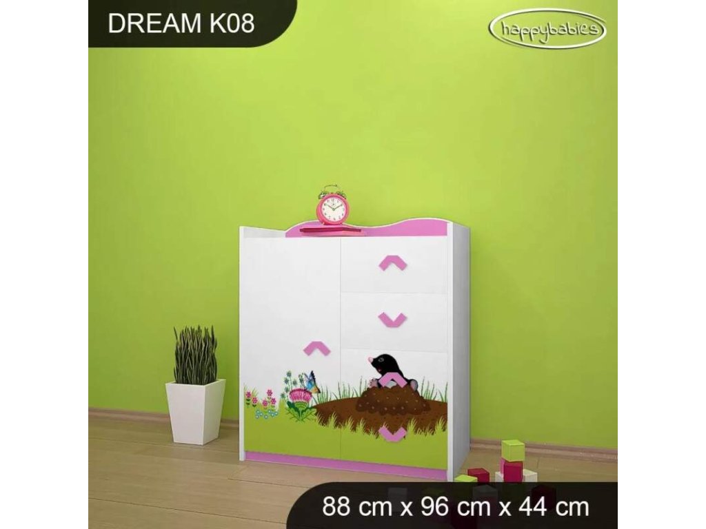 Dětské komody patří k základní výbavě každého pokojíčku. Komody jsou velmi praktické a můžeme je použít jak na oblečení pro děti, tak na hračky nebo knížky. Materiál: lamino 18 mm Barva: růžová, bílá, wenge, hruška, zelená, modrá Rozměr: 88 cm x 96 cm x 44 cm Ve stejném motivu si můžete zakoupit také skříň, regál, knihovnu, psací stůl, noční stolek, box na hračky nebo poličku.Buďte první, kdo napíše příspěvek k této položce.