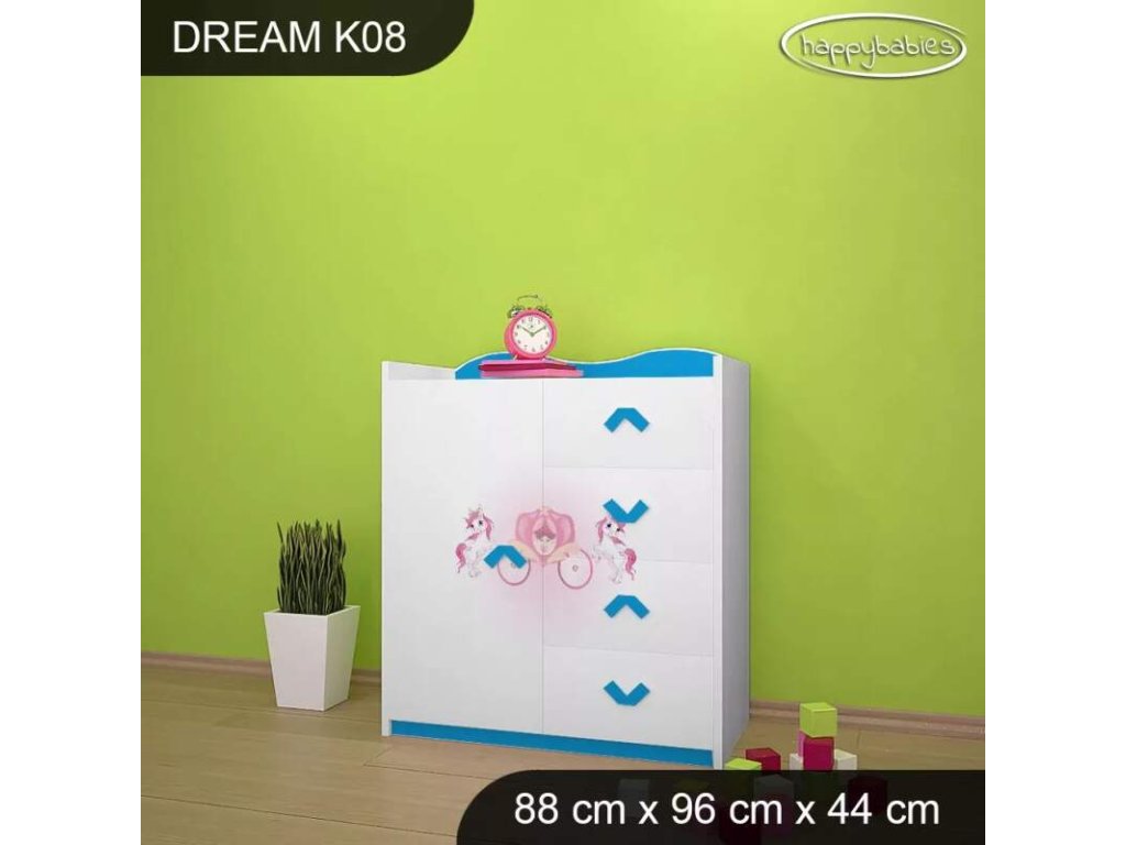 Dětské komody patří k základní výbavě každého pokojíčku. Komody jsou velmi praktické a můžeme je použít jak na oblečení pro děti, tak na hračky nebo knížky. Materiál: lamino 18 mm Barva: růžová, bílá, wenge, hruška, zelená, modrá Rozměr: 88 cm x 96 cm x 44 cm Ve stejném motivu si můžete zakoupit také skříň, regál, knihovnu, psací stůl, noční stolek, box na hračky nebo poličku.Buďte první, kdo napíše příspěvek k této položce.