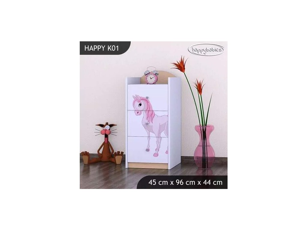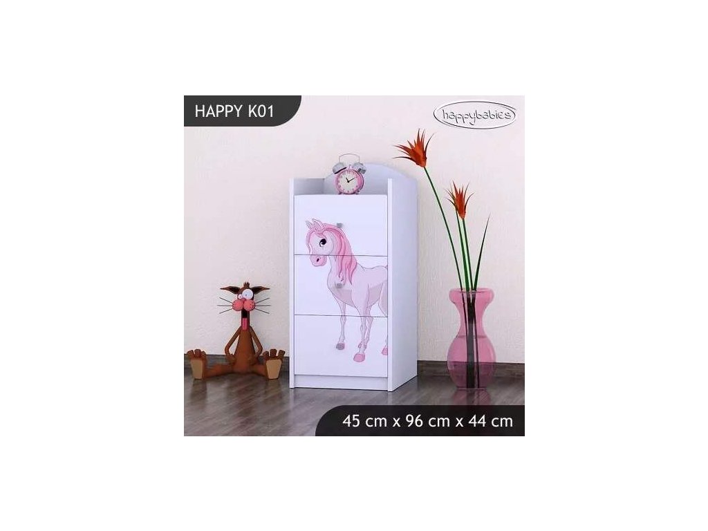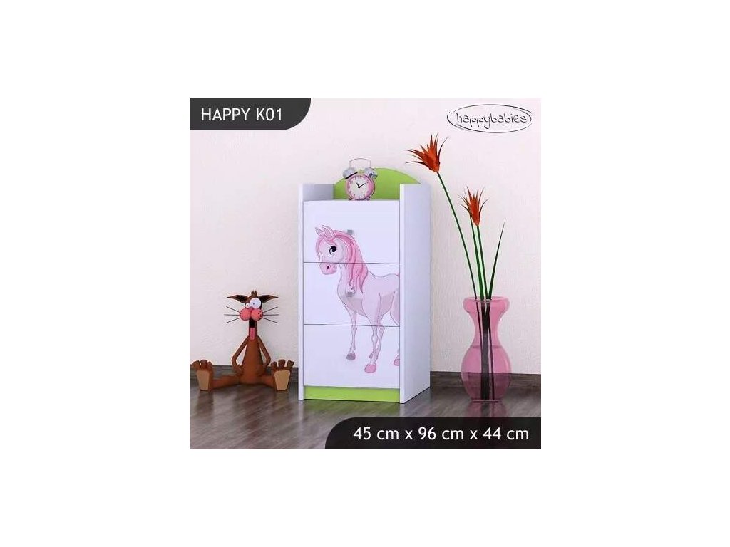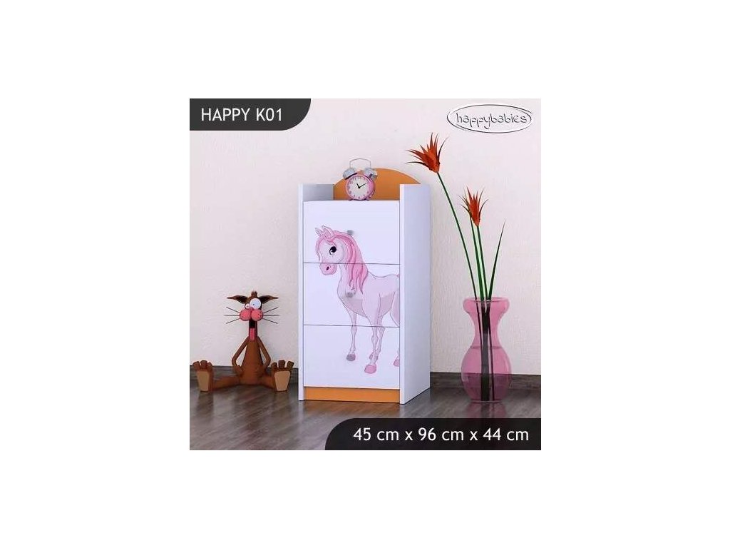 Dětské komody patří k základní výbavě každého pokojíčku. Komody jsou velmi praktické a můžeme je použít jak na oblečení pro děti, tak na hračky nebo knížky. Komoda obsahuje 3 šuplíky. Materiál: lamino 18 mm Barva: růžová, bílá, kaštan wenge, kalvados, buk, hruška, zelená, modrá, oranžová Rozměr: 45 cm x 96 cm x 44 cm Ve stejném motivu si můžete zakoupit také skříň, regál, knihovnu, psací stůl, noční stolek, box na hračky nebo poličku.Buďte první, kdo napíše příspěvek k této položce.