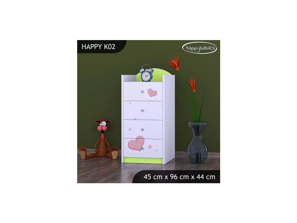 Dětské komody patří k základní výbavě každého pokojíčku. Komody jsou velmi praktické a můžeme je použít jak na oblečení pro děti, tak na hračky nebo knížky. Komoda obsahuje 4 šuplíky. Materiál: lamino 18 mm Barva: růžová, bílá, kaštan wenge, kalvados, buk, hruška, zelená, modrá, oranžová Rozměr: 45 cm x 96 cm x 44 cm Ve stejném motivu si můžete zakoupit také skříň, regál, knihovnu, psací stůl, noční stolek, box na hračky nebo poličku.Buďte první, kdo napíše příspěvek k této položce.