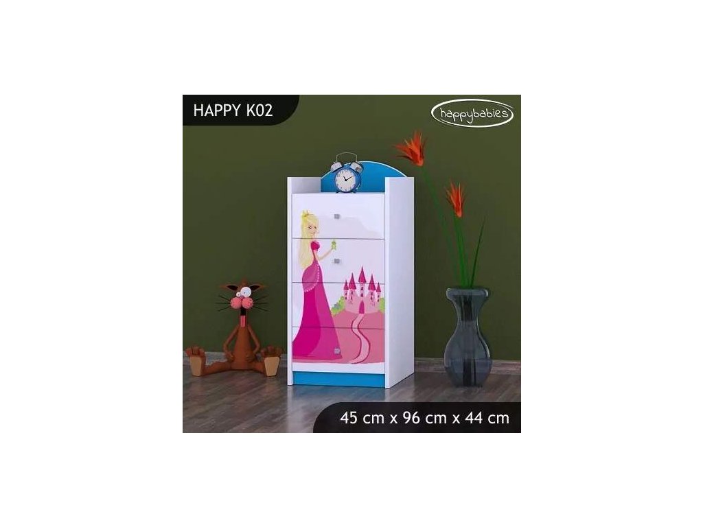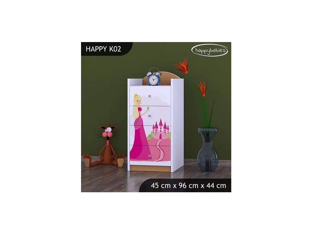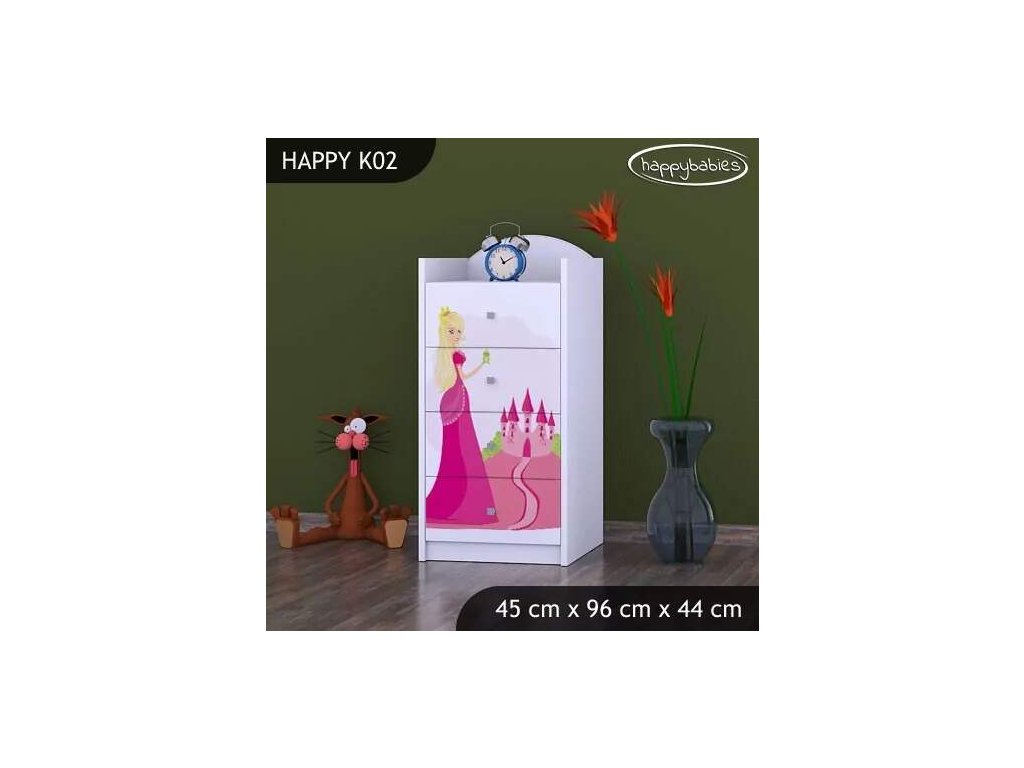 Dětské komody patří k základní výbavě každého pokojíčku. Komody jsou velmi praktické a můžeme je použít jak na oblečení pro děti, tak na hračky nebo knížky. Komoda obsahuje 4 šuplíky. Materiál: lamino 18 mm Barva: růžová, bílá, kaštan wenge, kalvados, buk, hruška, zelená, modrá, oranžová Rozměr: 45 cm x 96 cm x 44 cm Ve stejném motivu si můžete zakoupit také skříň, regál, knihovnu, psací stůl, noční stolek, box na hračky nebo poličku.Buďte první, kdo napíše příspěvek k této položce.