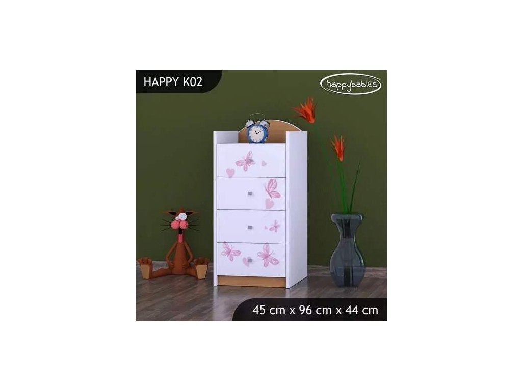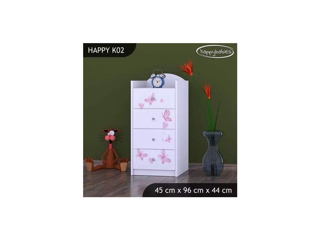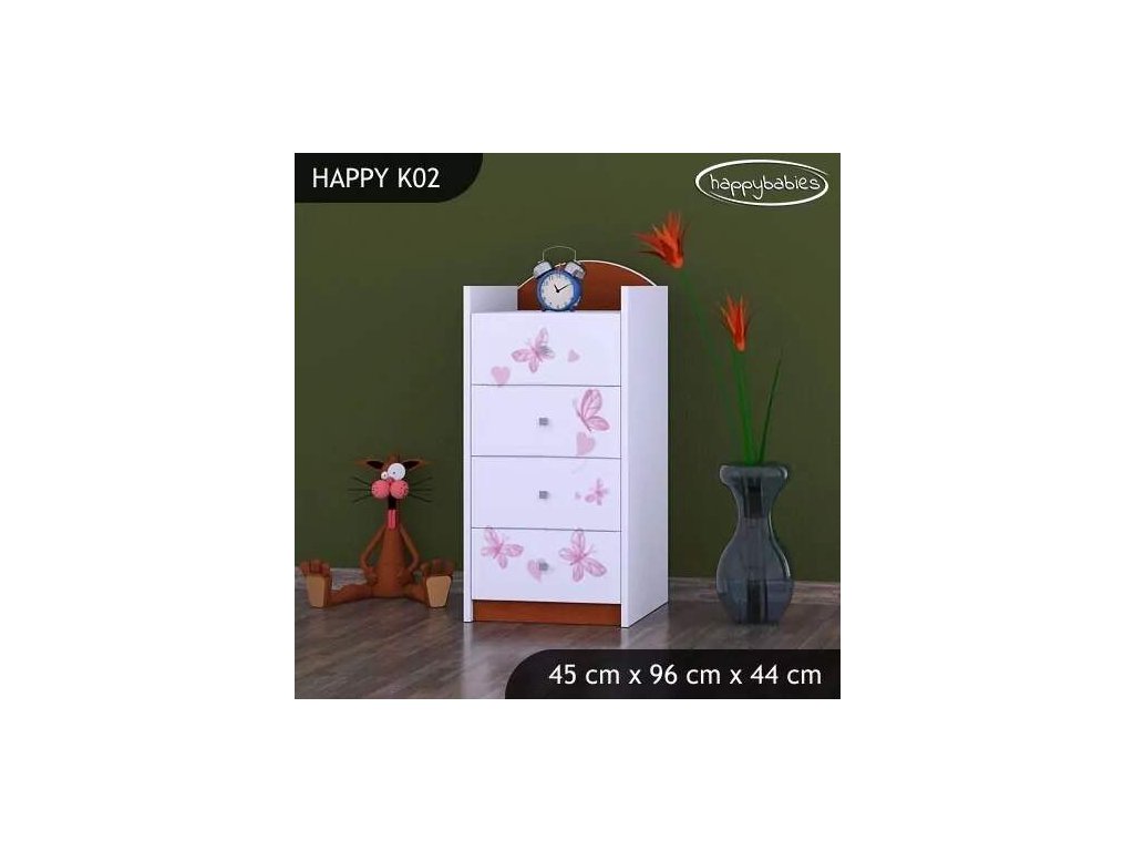 Dětské komody patří k základní výbavě každého pokojíčku. Komody jsou velmi praktické a můžeme je použít jak na oblečení pro děti, tak na hračky nebo knížky. Komoda obsahuje 4 šuplíky. Materiál: lamino 18 mm Barva: růžová, bílá, kaštan wenge, kalvados, buk, hruška, zelená, modrá, oranžová Rozměr: 45 cm x 96 cm x 44 cm Ve stejném motivu si můžete zakoupit také skříň, regál, knihovnu, psací stůl, noční stolek, box na hračky nebo poličku.Buďte první, kdo napíše příspěvek k této položce.