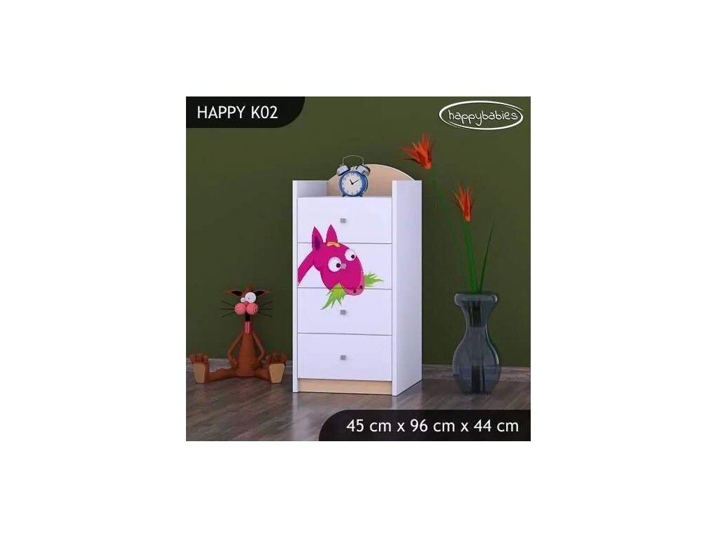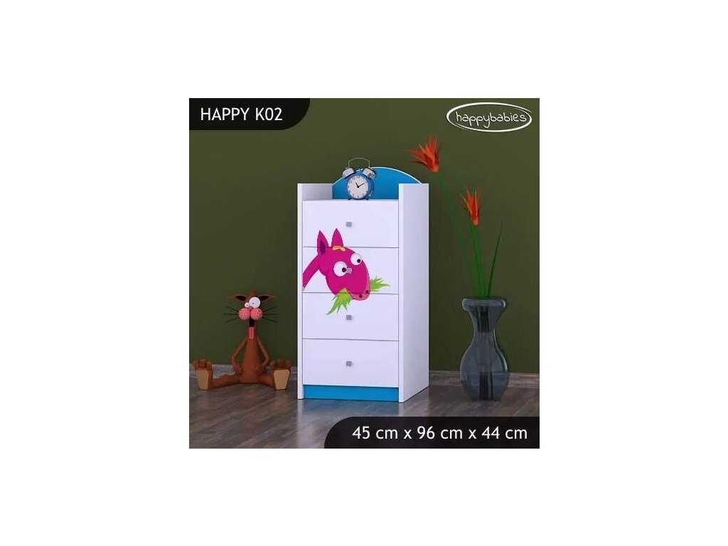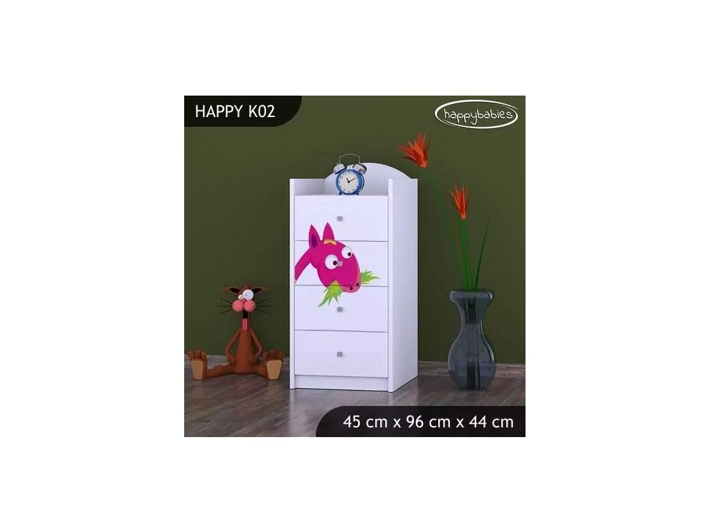 Dětské komody patří k základní výbavě každého pokojíčku. Komody jsou velmi praktické a můžeme je použít jak na oblečení pro děti, tak na hračky nebo knížky. Komoda obsahuje 4 šuplíky. Materiál: lamino 18 mm Barva: růžová, bílá, kaštan wenge, kalvados, buk, hruška, zelená, modrá, oranžová Rozměr: 45 cm x 96 cm x 44 cm Ve stejném motivu si můžete zakoupit také skříň, regál, knihovnu, psací stůl, noční stolek, box na hračky nebo poličku.Buďte první, kdo napíše příspěvek k této položce.
