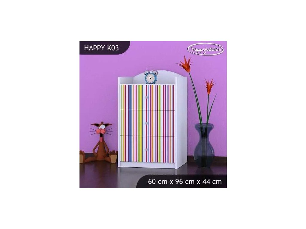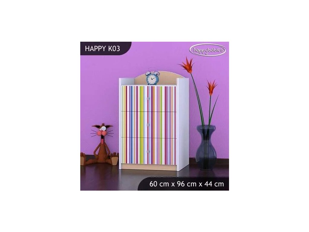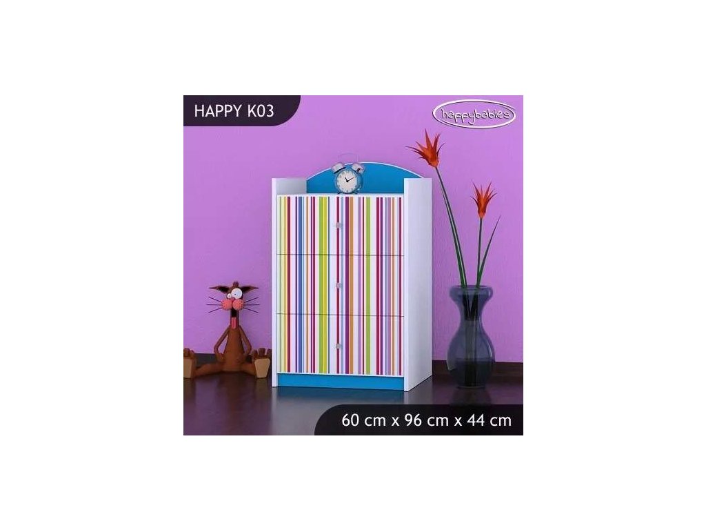 Dětské komody patří k základní výbavě každého pokojíčku. Komody jsou velmi praktické a můžeme je použít jak na oblečení pro děti, tak na hračky nebo knížky. Komoda obsahuje 3 šuplíky. Materiál: lamino 18 mm Barva: růžová, bílá, kaštan wenge, kalvados, buk, hruška, zelená, modrá, oranžová Rozměr: 60 cm x 96 cm x 44 cm Ve stejném motivu si můžete zakoupit také skříň, regál, knihovnu, psací stůl, noční stolek, box na hračky nebo poličku.Buďte první, kdo napíše příspěvek k této položce.
