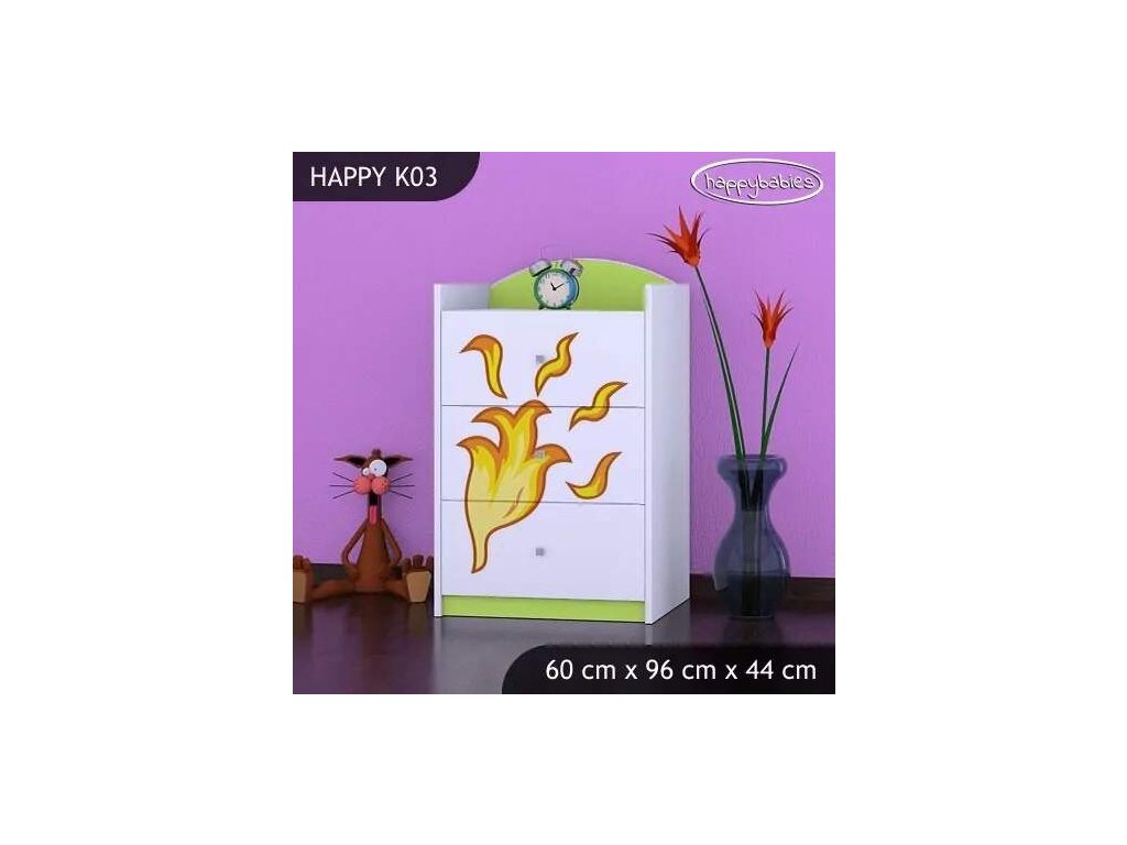 Dětské komody patří k základní výbavě každého pokojíčku. Komody jsou velmi praktické a můžeme je použít jak na oblečení pro děti, tak na hračky nebo knížky. Komoda obsahuje 3 šuplíky. Materiál: lamino 18 mm Barva: růžová, bílá, kaštan wenge, kalvados, buk, hruška, zelená, modrá, oranžová Rozměr: 60 cm x 96 cm x 44 cm Ve stejném motivu si můžete zakoupit také skříň, regál, knihovnu, psací stůl, noční stolek, box na hračky nebo poličku.Buďte první, kdo napíše příspěvek k této položce.