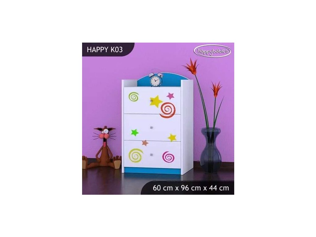 Dětské komody patří k základní výbavě každého pokojíčku. Komody jsou velmi praktické a můžeme je použít jak na oblečení pro děti, tak na hračky nebo knížky. Komoda obsahuje 3 šuplíky. Materiál: lamino 18 mm Barva: růžová, bílá, kaštan wenge, kalvados, buk, hruška, zelená, modrá, oranžová Rozměr: 60 cm x 96 cm x 44 cm Ve stejném motivu si můžete zakoupit také skříň, regál, knihovnu, psací stůl, noční stolek, box na hračky nebo poličku.Buďte první, kdo napíše příspěvek k této položce.
