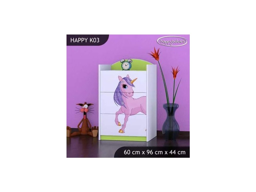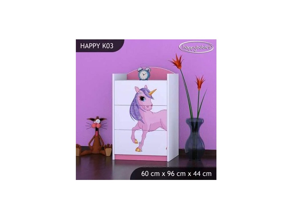Dětské komody patří k základní výbavě každého pokojíčku. Komody jsou velmi praktické a můžeme je použít jak na oblečení pro děti, tak na hračky nebo knížky. Komoda obsahuje 3 šuplíky. Materiál: lamino 18 mm Barva: růžová, bílá, kaštan wenge, kalvados, buk, hruška, zelená, modrá, oranžová Rozměr: 60 cm x 96 cm x 44 cm Ve stejném motivu si můžete zakoupit také skříň, regál, knihovnu, psací stůl, noční stolek, box na hračky nebo poličku.Buďte první, kdo napíše příspěvek k této položce.
