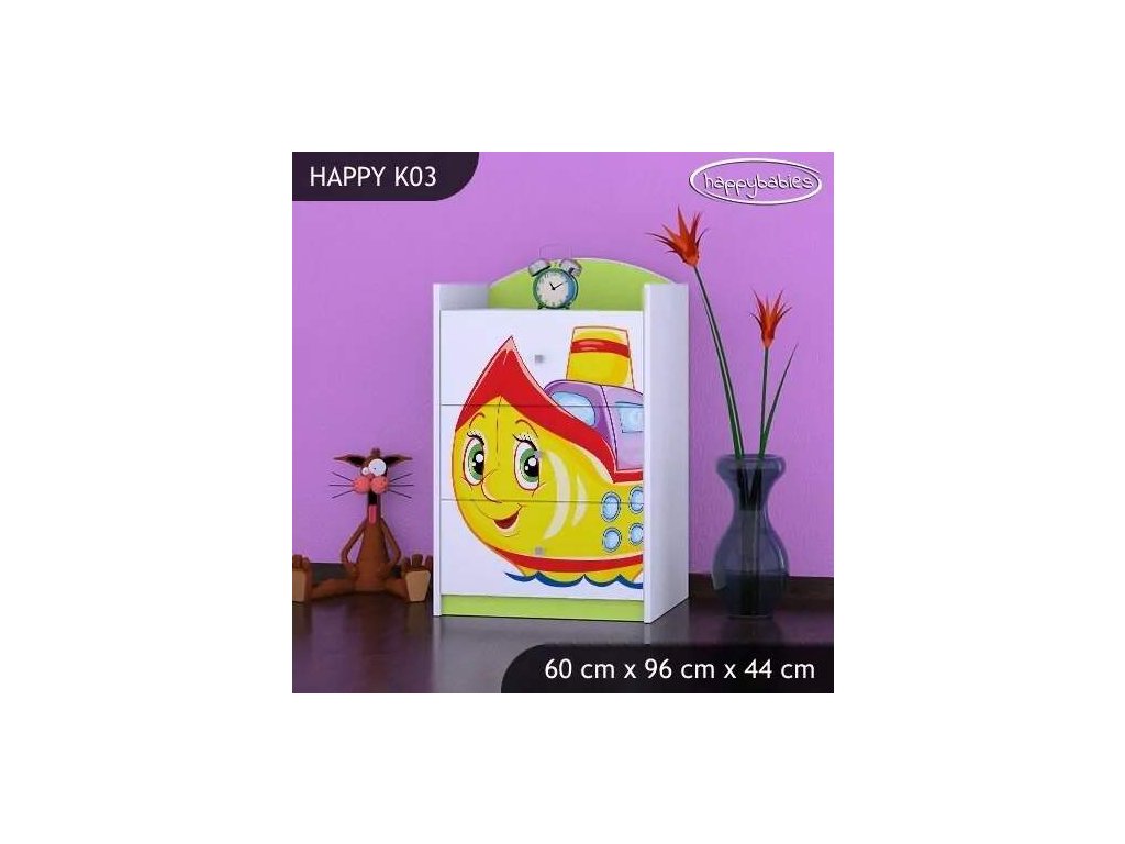 Dětské komody patří k základní výbavě každého pokojíčku. Komody jsou velmi praktické a můžeme je použít jak na oblečení pro děti, tak na hračky nebo knížky. Komoda obsahuje 3 šuplíky. Materiál: lamino 18 mm Barva: růžová, bílá, kaštan wenge, kalvados, buk, hruška, zelená, modrá, oranžová Rozměr: 60 cm x 96 cm x 44 cm Ve stejném motivu si můžete zakoupit také skříň, regál, knihovnu, psací stůl, noční stolek, box na hračky nebo poličku.Buďte první, kdo napíše příspěvek k této položce.