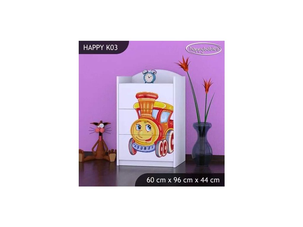 Dětské komody patří k základní výbavě každého pokojíčku. Komody jsou velmi praktické a můžeme je použít jak na oblečení pro děti, tak na hračky nebo knížky. Komoda obsahuje 3 šuplíky. Materiál: lamino 18 mm Barva: růžová, bílá, kaštan wenge, kalvados, buk, hruška, zelená, modrá, oranžová Rozměr: 60 cm x 96 cm x 44 cm Ve stejném motivu si můžete zakoupit také skříň, regál, knihovnu, psací stůl, noční stolek, box na hračky nebo poličku.Buďte první, kdo napíše příspěvek k této položce.