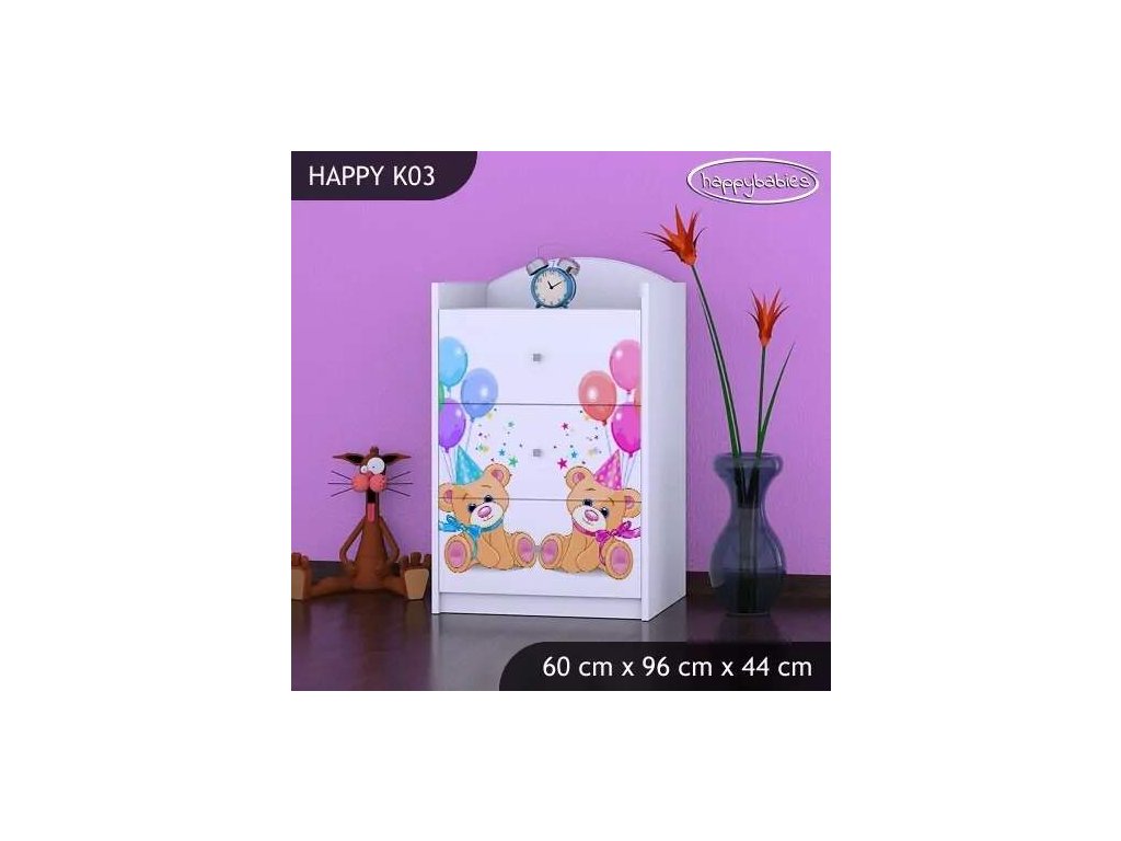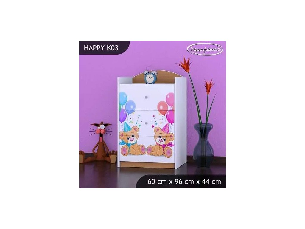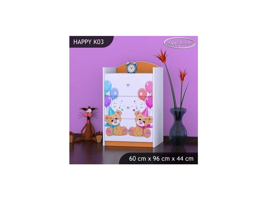 Dětské komody patří k základní výbavě každého pokojíčku. Komody jsou velmi praktické a můžeme je použít jak na oblečení pro děti, tak na hračky nebo knížky. Komoda obsahuje 3 šuplíky. Materiál: lamino 18 mm Barva: růžová, bílá, kaštan wenge, kalvados, buk, hruška, zelená, modrá, oranžová Rozměr: 60 cm x 96 cm x 44 cm Ve stejném motivu si můžete zakoupit také skříň, regál, knihovnu, psací stůl, noční stolek, box na hračky nebo poličku.Buďte první, kdo napíše příspěvek k této položce.