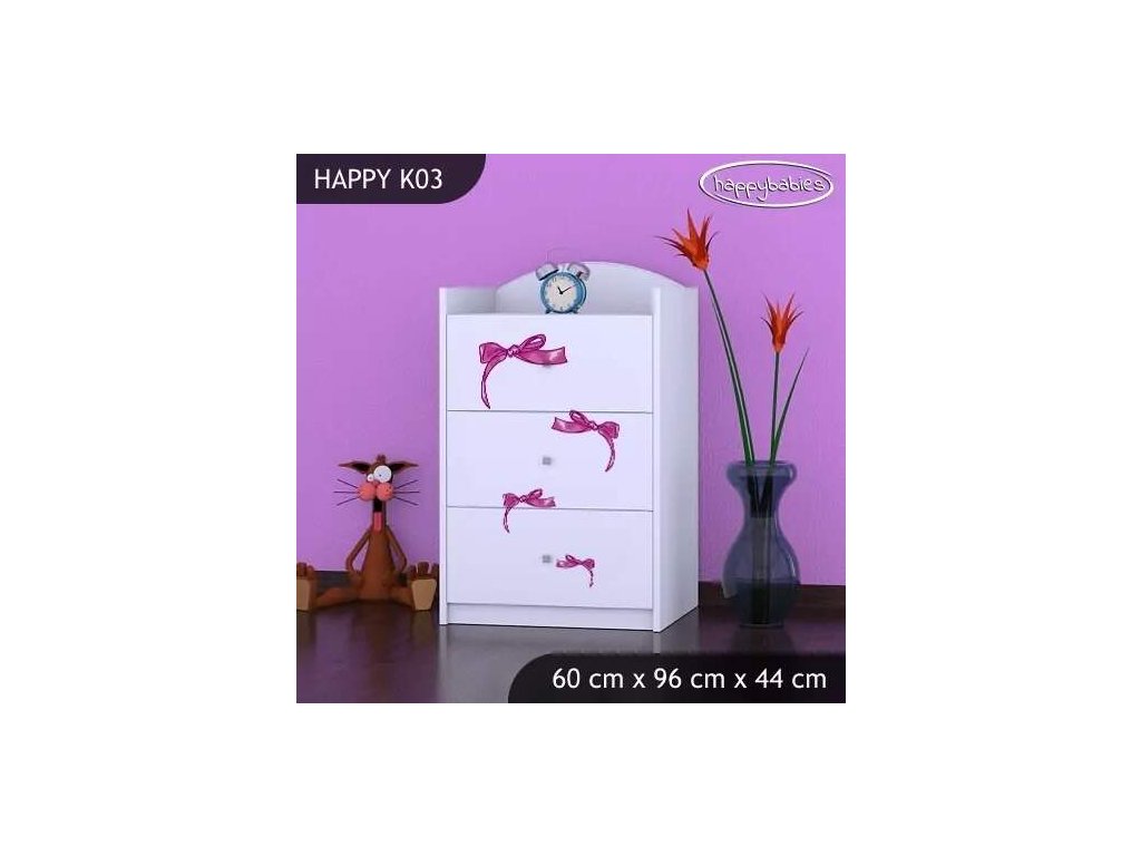 Dětské komody patří k základní výbavě každého pokojíčku. Komody jsou velmi praktické a můžeme je použít jak na oblečení pro děti, tak na hračky nebo knížky. Komoda obsahuje 3 šuplíky. Materiál: lamino 18 mm Barva: růžová, bílá, kaštan wenge, kalvados, buk, hruška, zelená, modrá, oranžová Rozměr: 60 cm x 96 cm x 44 cm Ve stejném motivu si můžete zakoupit také skříň, regál, knihovnu, psací stůl, noční stolek, box na hračky nebo poličku.Buďte první, kdo napíše příspěvek k této položce.
