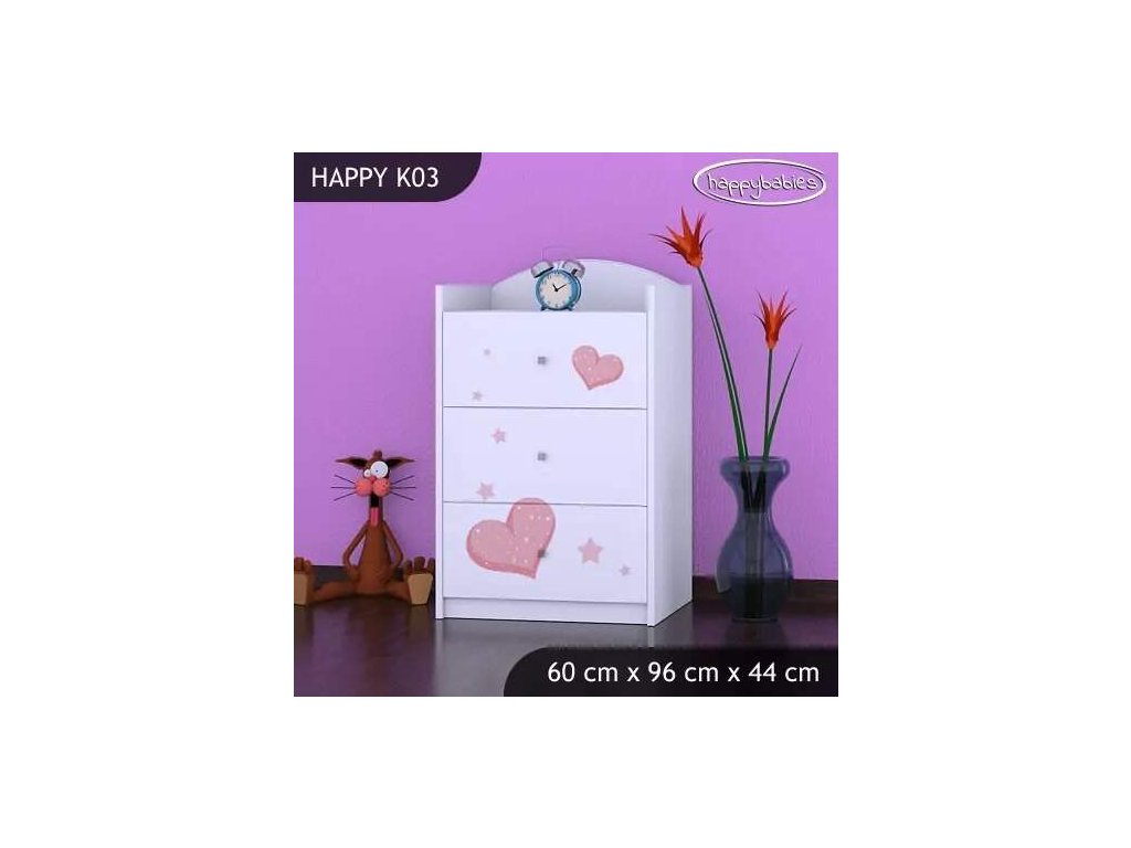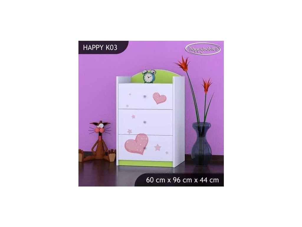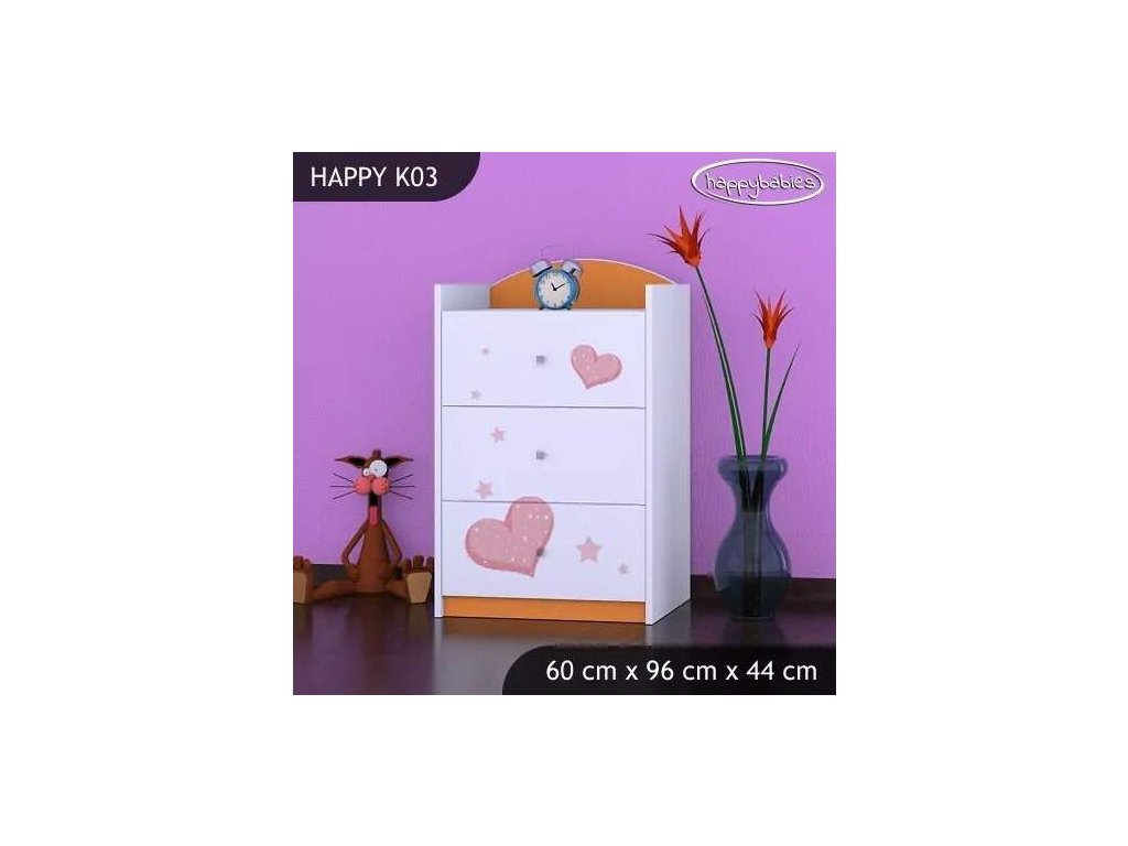 Dětské komody patří k základní výbavě každého pokojíčku. Komody jsou velmi praktické a můžeme je použít jak na oblečení pro děti, tak na hračky nebo knížky. Komoda obsahuje 3 šuplíky. Materiál: lamino 18 mm Barva: růžová, bílá, kaštan wenge, kalvados, buk, hruška, zelená, modrá, oranžová Rozměr: 60 cm x 96 cm x 44 cm Ve stejném motivu si můžete zakoupit také skříň, regál, knihovnu, psací stůl, noční stolek, box na hračky nebo poličku.Buďte první, kdo napíše příspěvek k této položce.