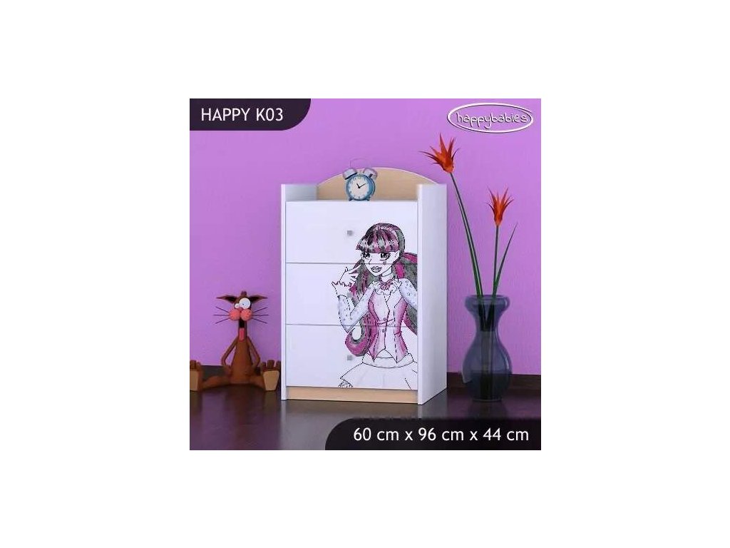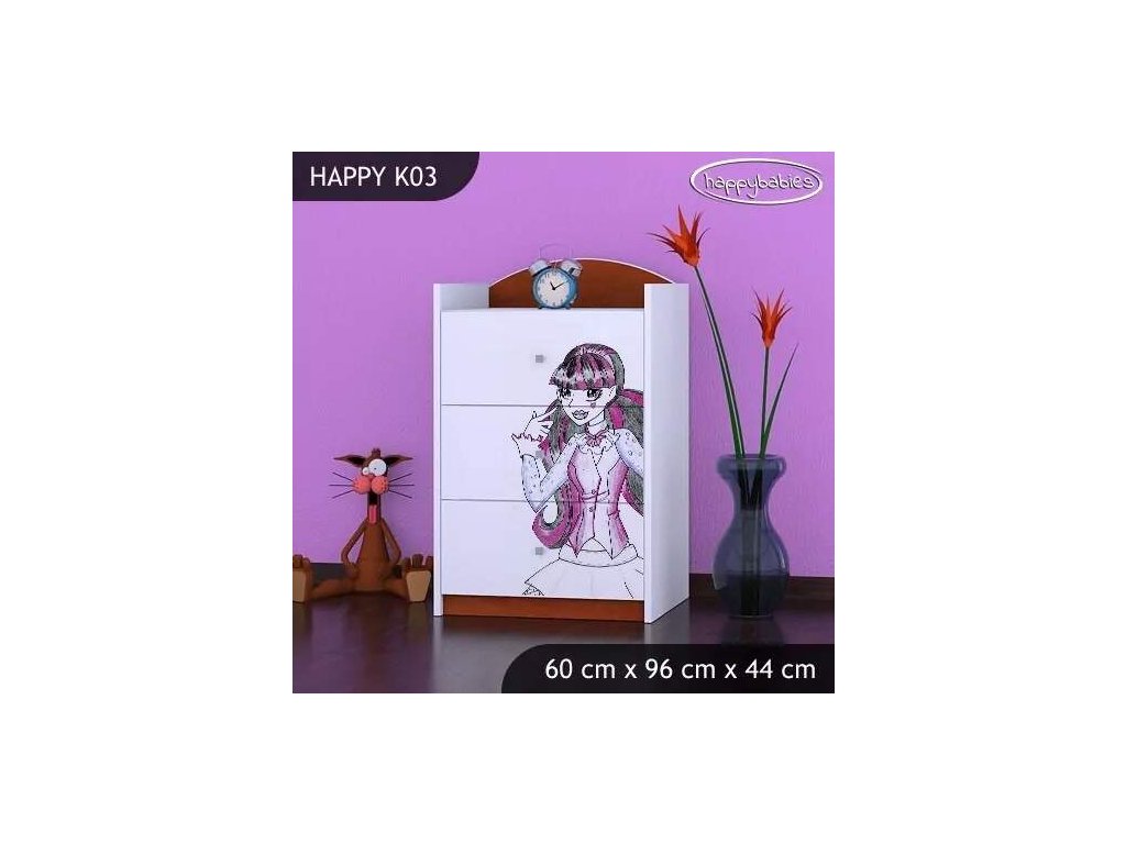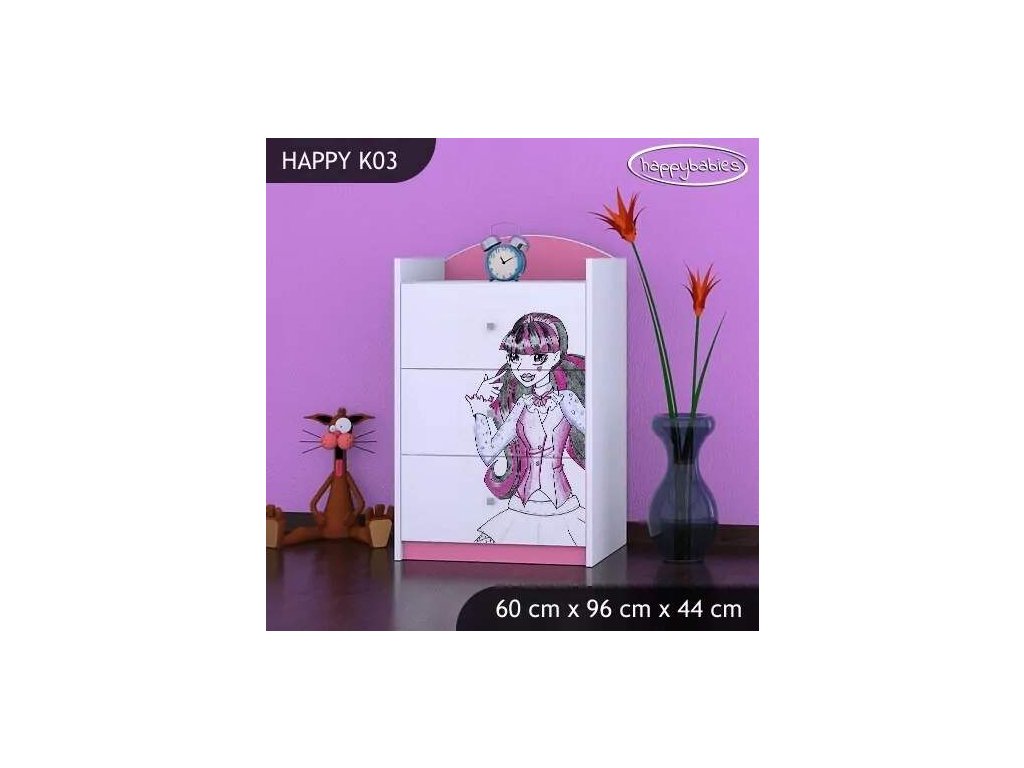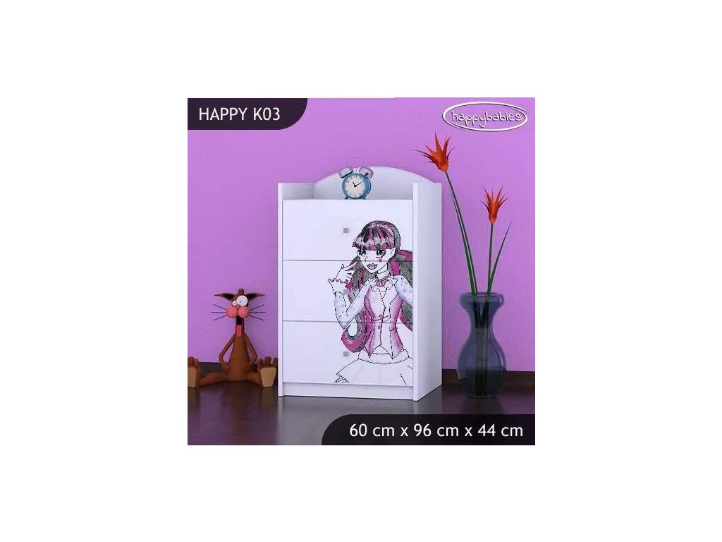 Dětské komody patří k základní výbavě každého pokojíčku. Komody jsou velmi praktické a můžeme je použít jak na oblečení pro děti, tak na hračky nebo knížky. Komoda obsahuje 3 šuplíky. Materiál: lamino 18 mm Barva: růžová, bílá, kaštan wenge, kalvados, buk, hruška, zelená, modrá, oranžová Rozměr: 60 cm x 96 cm x 44 cm Ve stejném motivu si můžete zakoupit také skříň, regál, knihovnu, psací stůl, noční stolek, box na hračky nebo poličku.Buďte první, kdo napíše příspěvek k této položce.