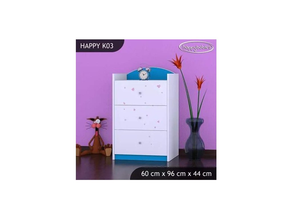 Dětské komody patří k základní výbavě každého pokojíčku. Komody jsou velmi praktické a můžeme je použít jak na oblečení pro děti, tak na hračky nebo knížky. Komoda obsahuje 3 šuplíky. Materiál: lamino 18 mm Barva: růžová, bílá, kaštan wenge, kalvados, buk, hruška, zelená, modrá, oranžová Rozměr: 60 cm x 96 cm x 44 cm Ve stejném motivu si můžete zakoupit také skříň, regál, knihovnu, psací stůl, noční stolek, box na hračky nebo poličku.Buďte první, kdo napíše příspěvek k této položce.