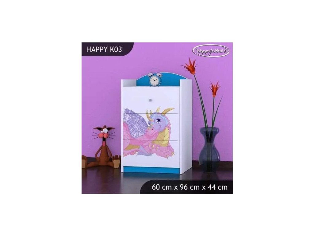 Dětské komody patří k základní výbavě každého pokojíčku. Komody jsou velmi praktické a můžeme je použít jak na oblečení pro děti, tak na hračky nebo knížky. Komoda obsahuje 3 šuplíky. Materiál: lamino 18 mm Barva: růžová, bílá, kaštan wenge, kalvados, buk, hruška, zelená, modrá, oranžová Rozměr: 60 cm x 96 cm x 44 cm Ve stejném motivu si můžete zakoupit také skříň, regál, knihovnu, psací stůl, noční stolek, box na hračky nebo poličku.Buďte první, kdo napíše příspěvek k této položce.