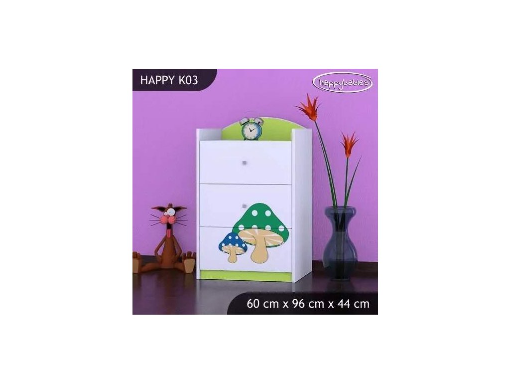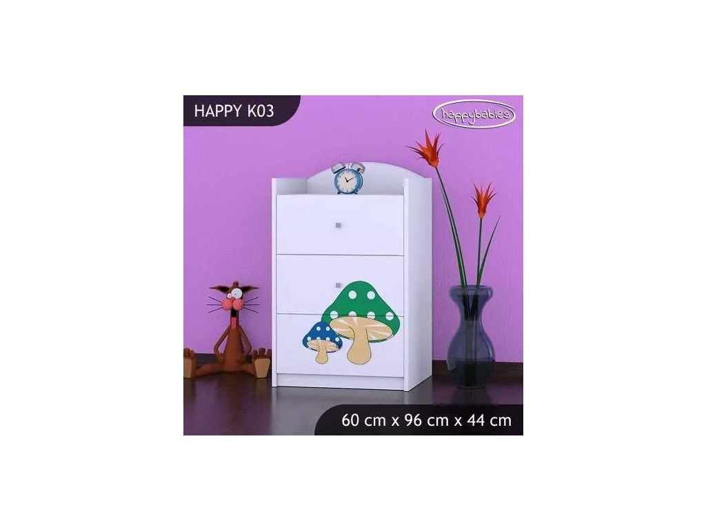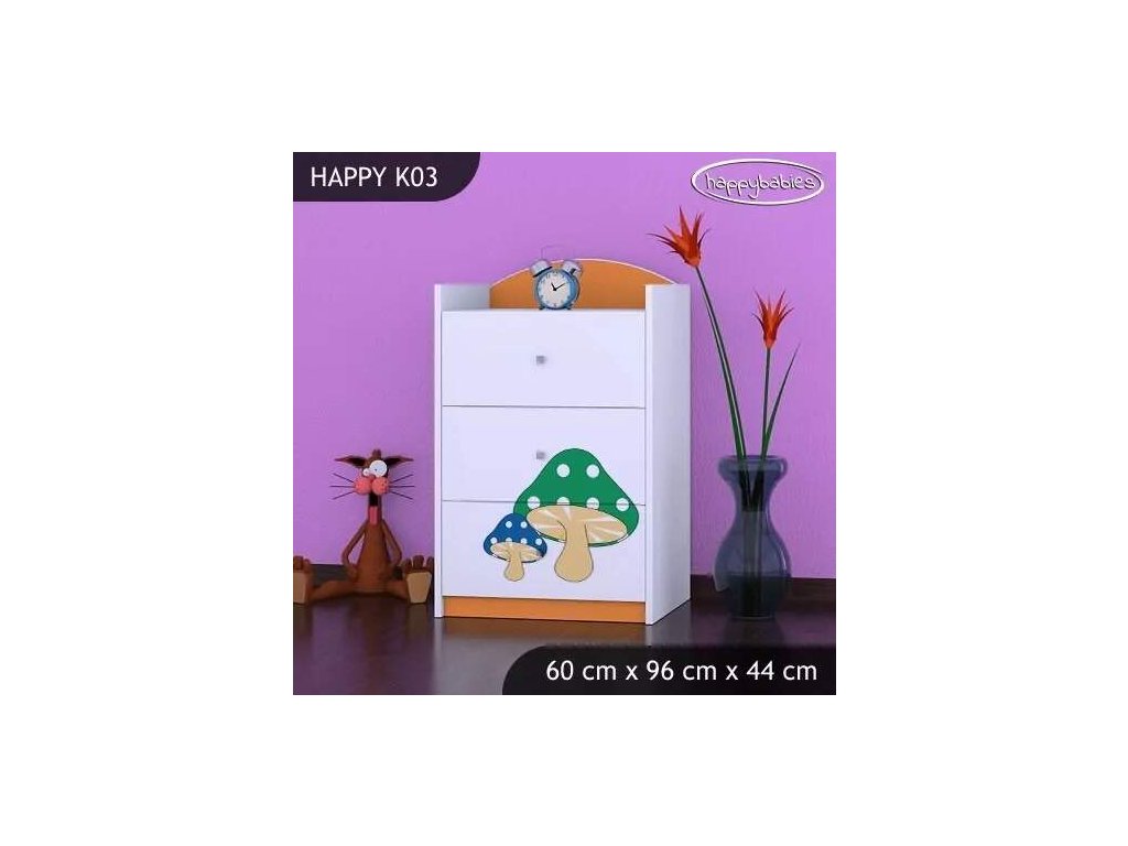 Dětské komody patří k základní výbavě každého pokojíčku. Komody jsou velmi praktické a můžeme je použít jak na oblečení pro děti, tak na hračky nebo knížky. Komoda obsahuje 3 šuplíky. Materiál: lamino 18 mm Barva: růžová, bílá, kaštan wenge, kalvados, buk, hruška, zelená, modrá, oranžová Rozměr: 60 cm x 96 cm x 44 cm Ve stejném motivu si můžete zakoupit také skříň, regál, knihovnu, psací stůl, noční stolek, box na hračky nebo poličku.Buďte první, kdo napíše příspěvek k této položce.