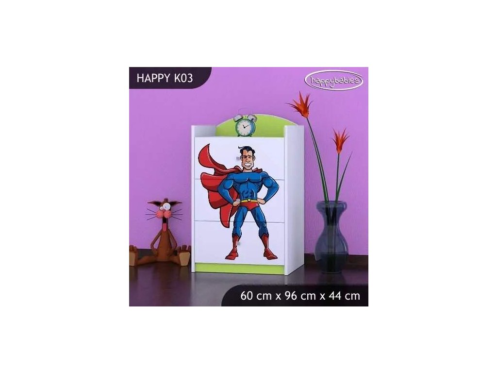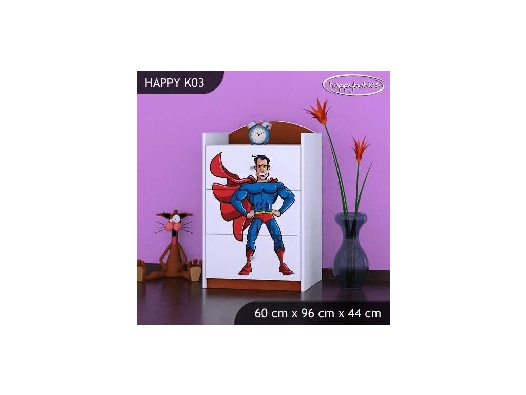 Dětské komody patří k základní výbavě každého pokojíčku. Komody jsou velmi praktické a můžeme je použít jak na oblečení pro děti, tak na hračky nebo knížky. Komoda obsahuje 3 šuplíky. Materiál: lamino 18 mm Barva: růžová, bílá, kaštan wenge, kalvados, buk, hruška, zelená, modrá, oranžová Rozměr: 60 cm x 96 cm x 44 cm Ve stejném motivu si můžete zakoupit také skříň, regál, knihovnu, psací stůl, noční stolek, box na hračky nebo poličku.Buďte první, kdo napíše příspěvek k této položce.