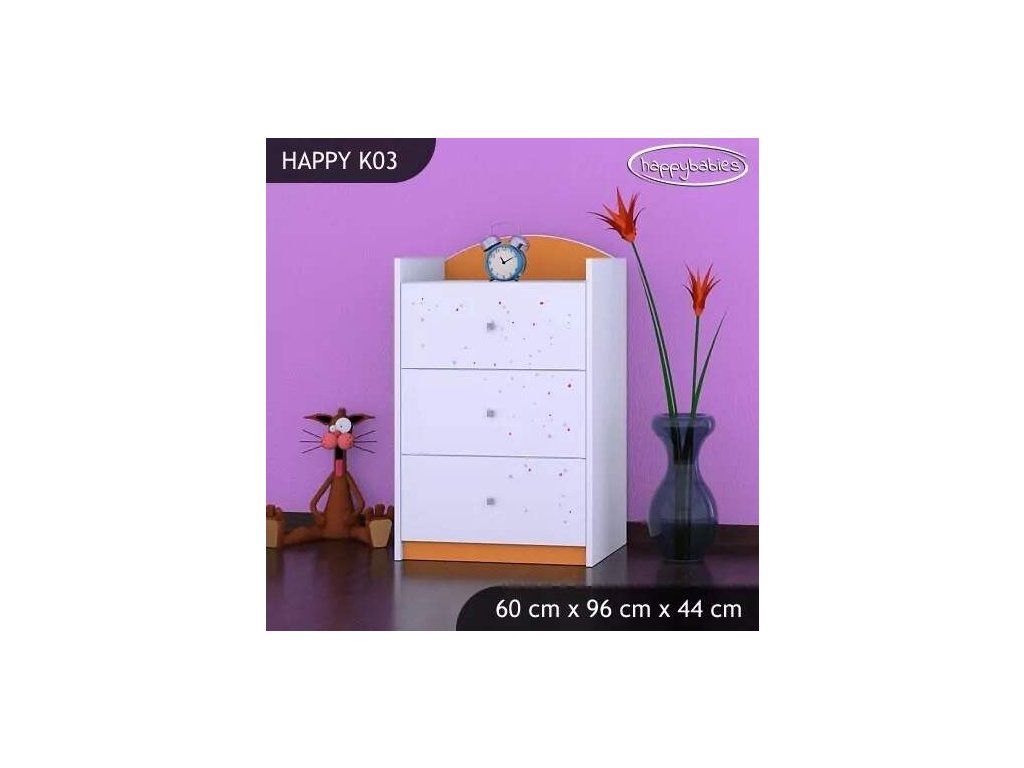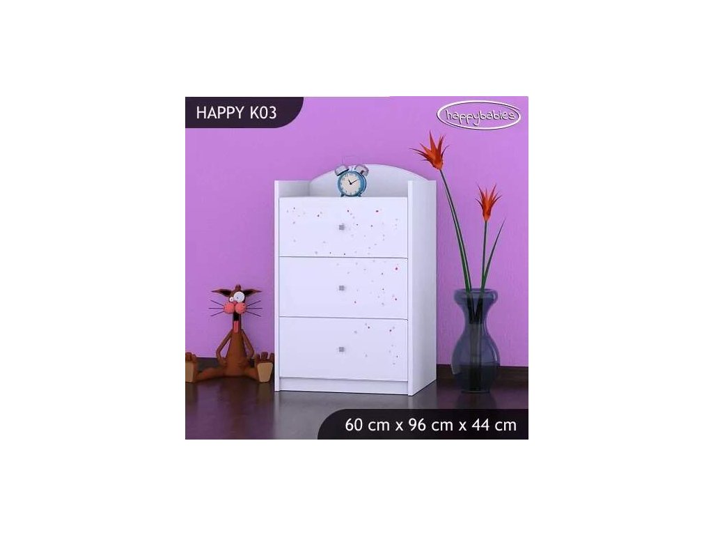 Dětské komody patří k základní výbavě každého pokojíčku. Komody jsou velmi praktické a můžeme je použít jak na oblečení pro děti, tak na hračky nebo knížky. Komoda obsahuje 3 šuplíky. Materiál: lamino 18 mm Barva: růžová, bílá, kaštan wenge, kalvados, buk, hruška, zelená, modrá, oranžová Rozměr: 60 cm x 96 cm x 44 cm Ve stejném motivu si můžete zakoupit také skříň, regál, knihovnu, psací stůl, noční stolek, box na hračky nebo poličku.Buďte první, kdo napíše příspěvek k této položce.