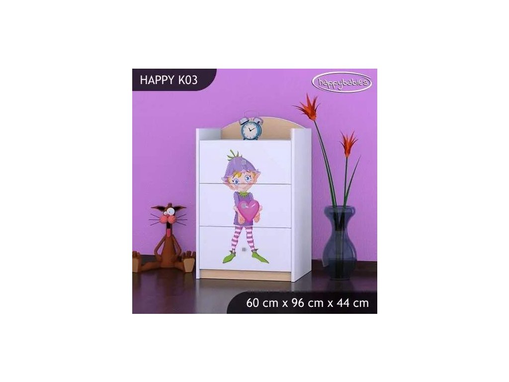 Dětské komody patří k základní výbavě každého pokojíčku. Komody jsou velmi praktické a můžeme je použít jak na oblečení pro děti, tak na hračky nebo knížky. Komoda obsahuje 3 šuplíky. Materiál: lamino 18 mm Barva: růžová, bílá, kaštan wenge, kalvados, buk, hruška, zelená, modrá, oranžová Rozměr: 60 cm x 96 cm x 44 cm Ve stejném motivu si můžete zakoupit také skříň, regál, knihovnu, psací stůl, noční stolek, box na hračky nebo poličku.Buďte první, kdo napíše příspěvek k této položce.