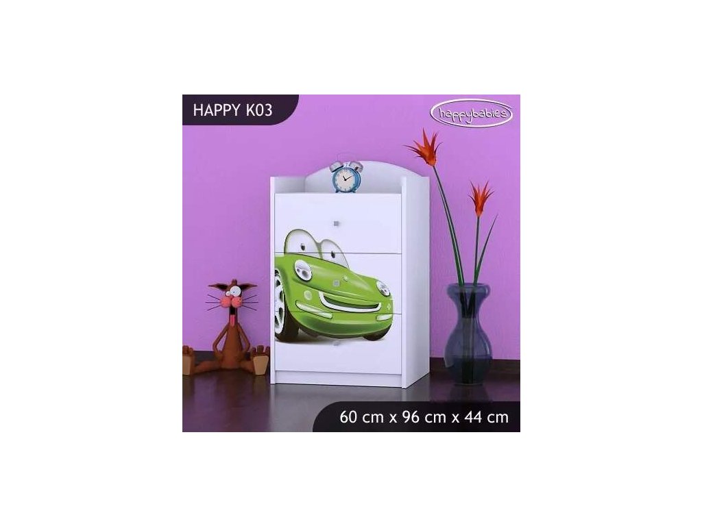 Dětské komody patří k základní výbavě každého pokojíčku. Komody jsou velmi praktické a můžeme je použít jak na oblečení pro děti, tak na hračky nebo knížky. Komoda obsahuje 3 šuplíky. Materiál: lamino 18 mm Barva: růžová, bílá, kaštan wenge, kalvados, buk, hruška, zelená, modrá, oranžová Rozměr: 60 cm x 96 cm x 44 cm Ve stejném motivu si můžete zakoupit také skříň, regál, knihovnu, psací stůl, noční stolek, box na hračky nebo poličku.Buďte první, kdo napíše příspěvek k této položce.