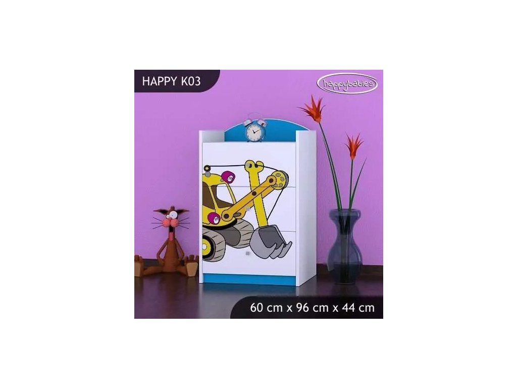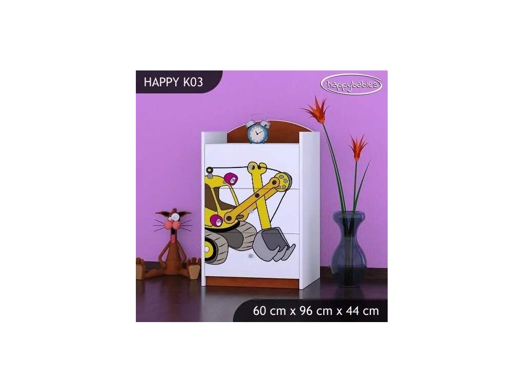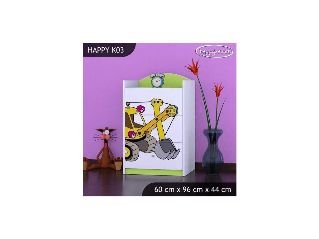 Dětské komody patří k základní výbavě každého pokojíčku. Komody jsou velmi praktické a můžeme je použít jak na oblečení pro děti, tak na hračky nebo knížky. Komoda obsahuje 3 šuplíky. Materiál: lamino 18 mm Barva: růžová, bílá, kaštan wenge, kalvados, buk, hruška, zelená, modrá, oranžová Rozměr: 60 cm x 96 cm x 44 cm Ve stejném motivu si můžete zakoupit také skříň, regál, knihovnu, psací stůl, noční stolek, box na hračky nebo poličku.Buďte první, kdo napíše příspěvek k této položce.