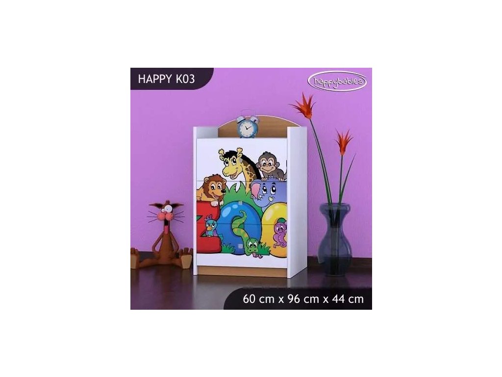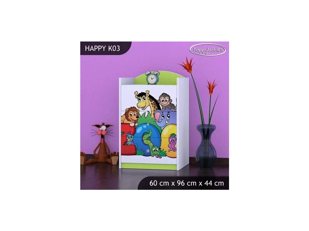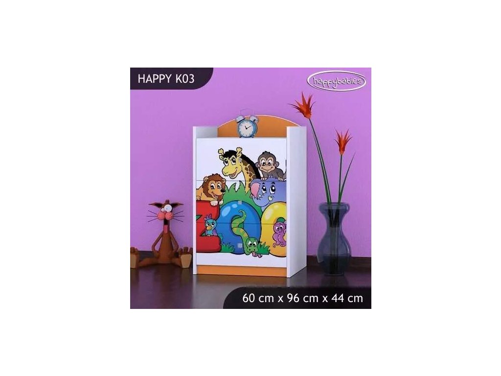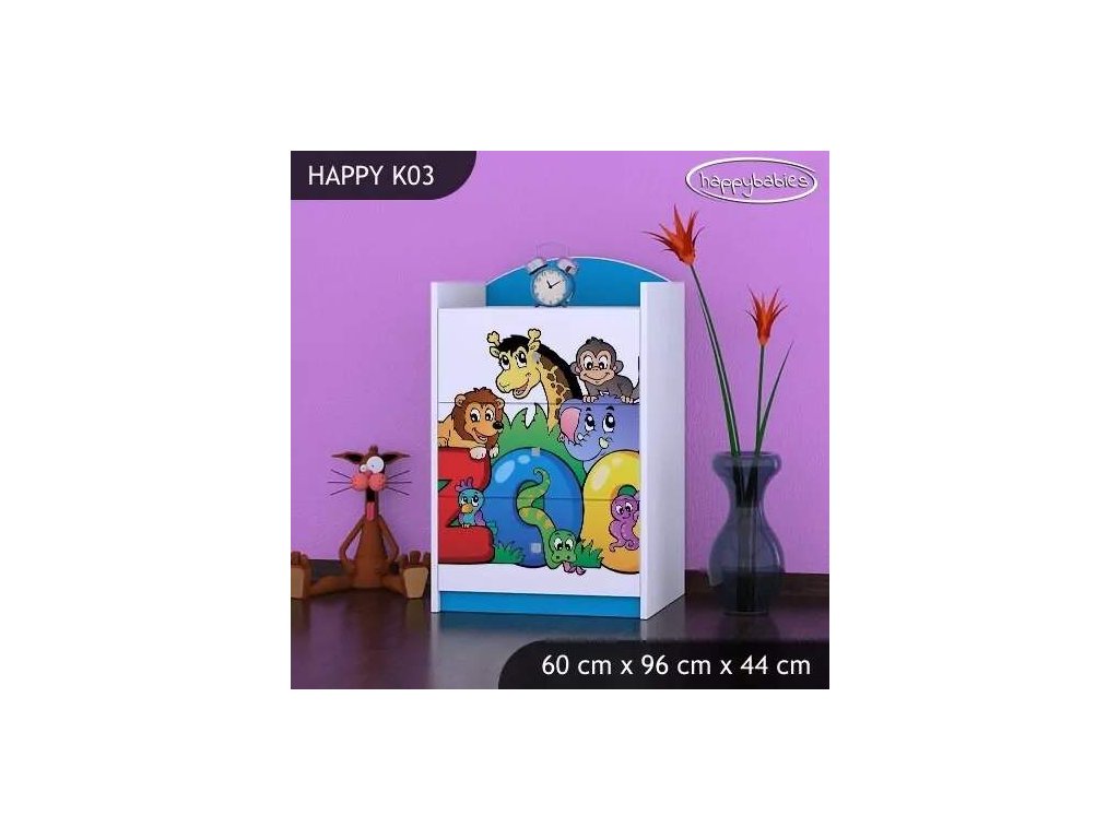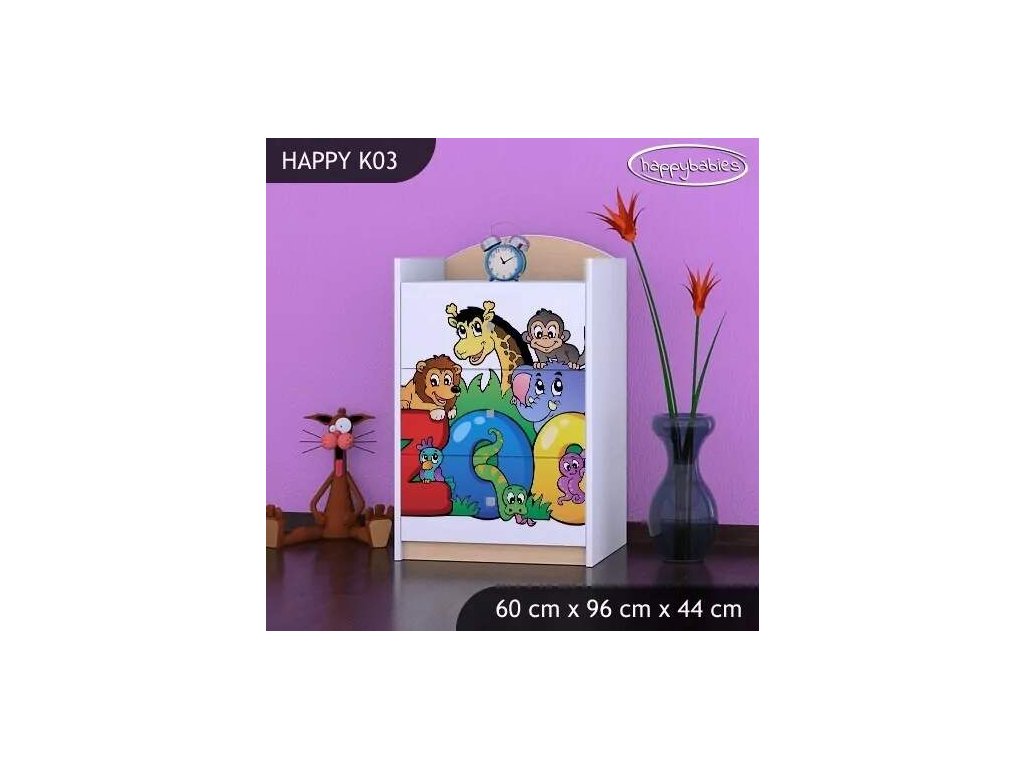 Dětské komody patří k základní výbavě každého pokojíčku. Komody jsou velmi praktické a můžeme je použít jak na oblečení pro děti, tak na hračky nebo knížky. Komoda obsahuje 3 šuplíky. Materiál: lamino 18 mm Barva: růžová, bílá, kaštan wenge, kalvados, buk, hruška, zelená, modrá, oranžová Rozměr: 60 cm x 96 cm x 44 cm Ve stejném motivu si můžete zakoupit také skříň, regál, knihovnu, psací stůl, noční stolek, box na hračky nebo poličku.Buďte první, kdo napíše příspěvek k této položce.