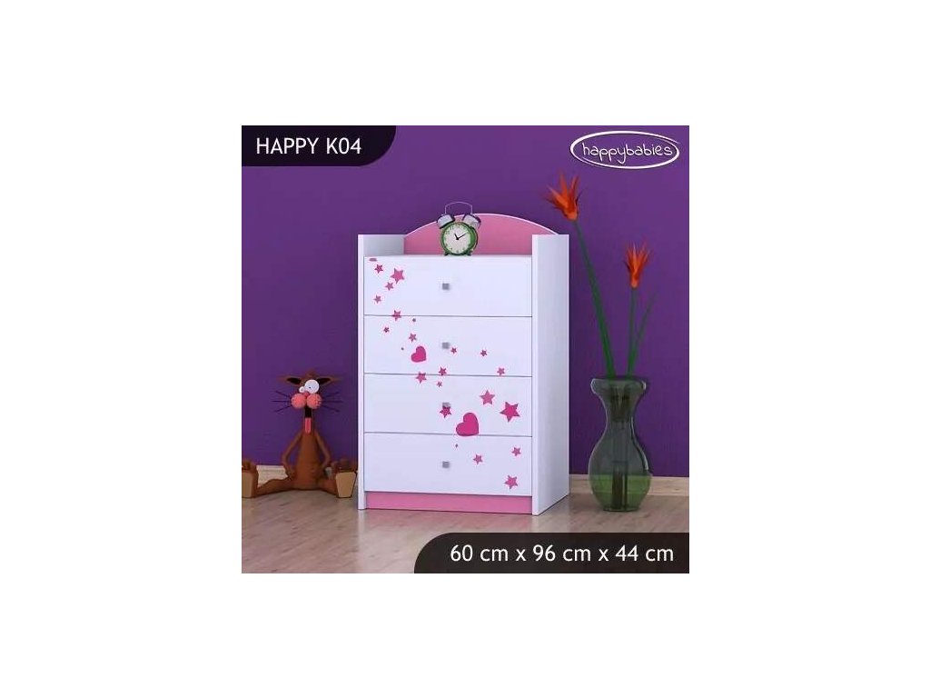Dětské komody patří k základní výbavě každého pokojíčku. Komody jsou velmi praktické a můžeme je použít jak na oblečení pro děti, tak na hračky nebo knížky. Komoda obsahuje 4 šuplíky. Materiál: lamino 18 mm Barva: růžová, bílá, kaštan wenge, kalvados, buk, hruška, zelená, modrá, oranžová Rozměr: 60 cm x 96 cm x 44 cm Ve stejném motivu si můžete zakoupit také skříň, regál, knihovnu, psací stůl, noční stolek, box na hračky nebo poličku.Buďte první, kdo napíše příspěvek k této položce.