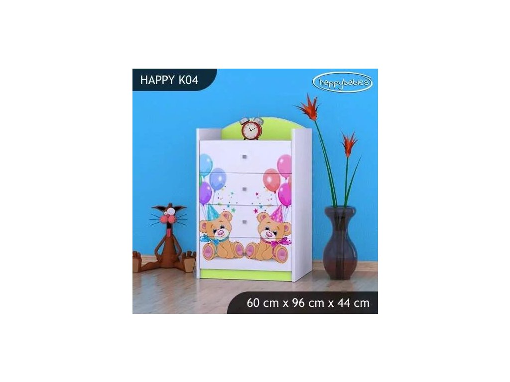 Dětské komody patří k základní výbavě každého pokojíčku. Komody jsou velmi praktické a můžeme je použít jak na oblečení pro děti, tak na hračky nebo knížky. Komoda obsahuje 4 šuplíky. Materiál: lamino 18 mm Barva: růžová, bílá, kaštan wenge, kalvados, buk, hruška, zelená, modrá, oranžová Rozměr: 60 cm x 96 cm x 44 cm Ve stejném motivu si můžete zakoupit také skříň, regál, knihovnu, psací stůl, noční stolek, box na hračky nebo poličku.Buďte první, kdo napíše příspěvek k této položce.