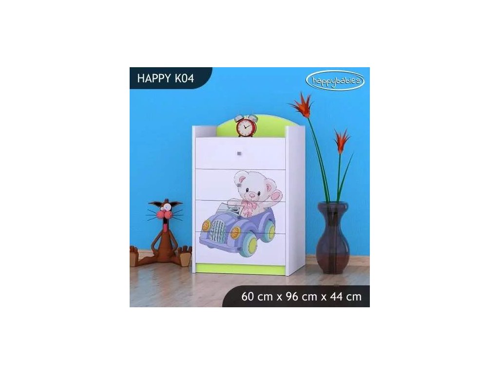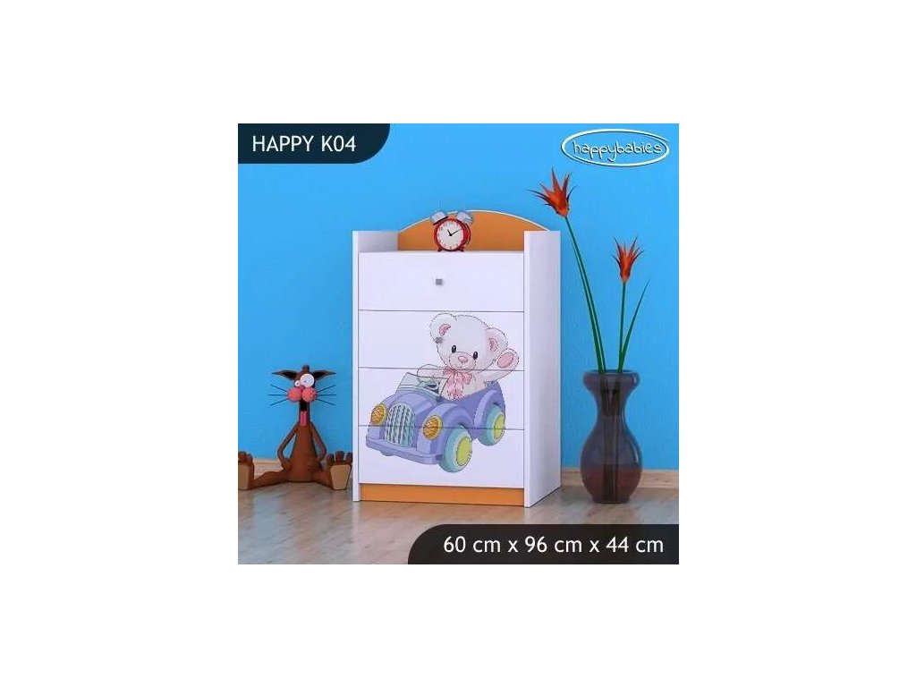 Dětské komody patří k základní výbavě každého pokojíčku. Komody jsou velmi praktické a můžeme je použít jak na oblečení pro děti, tak na hračky nebo knížky. Komoda obsahuje 4 šuplíky. Materiál: lamino 18 mm Barva: růžová, bílá, kaštan wenge, kalvados, buk, hruška, zelená, modrá, oranžová Rozměr: 60 cm x 96 cm x 44 cm Ve stejném motivu si můžete zakoupit také skříň, regál, knihovnu, psací stůl, noční stolek, box na hračky nebo poličku.Buďte první, kdo napíše příspěvek k této položce.