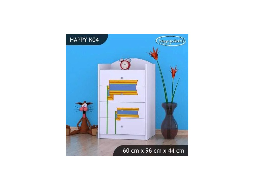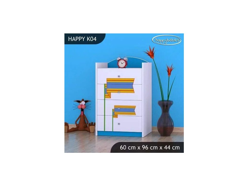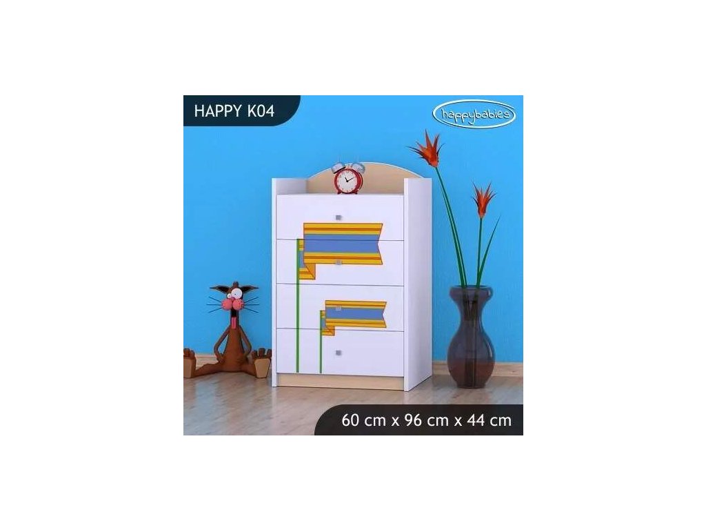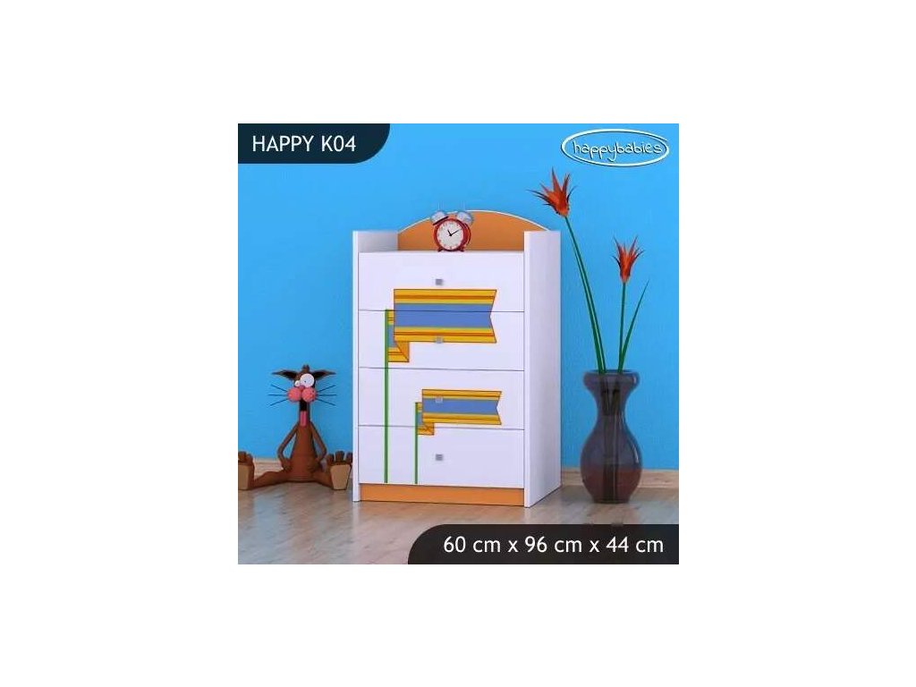 Dětské komody patří k základní výbavě každého pokojíčku. Komody jsou velmi praktické a můžeme je použít jak na oblečení pro děti, tak na hračky nebo knížky. Komoda obsahuje 4 šuplíky. Materiál: lamino 18 mm Barva: růžová, bílá, kaštan wenge, kalvados, buk, hruška, zelená, modrá, oranžová Rozměr: 60 cm x 96 cm x 44 cm Ve stejném motivu si můžete zakoupit také skříň, regál, knihovnu, psací stůl, noční stolek, box na hračky nebo poličku.Buďte první, kdo napíše příspěvek k této položce.