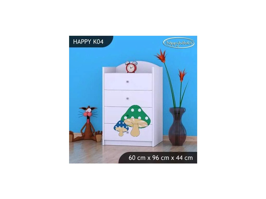 Dětské komody patří k základní výbavě každého pokojíčku. Komody jsou velmi praktické a můžeme je použít jak na oblečení pro děti, tak na hračky nebo knížky. Komoda obsahuje 4 šuplíky. Materiál: lamino 18 mm Barva: růžová, bílá, kaštan wenge, kalvados, buk, hruška, zelená, modrá, oranžová Rozměr: 60 cm x 96 cm x 44 cm Ve stejném motivu si můžete zakoupit také skříň, regál, knihovnu, psací stůl, noční stolek, box na hračky nebo poličku.Buďte první, kdo napíše příspěvek k této položce.