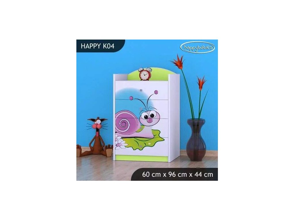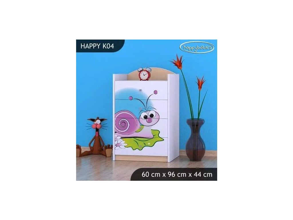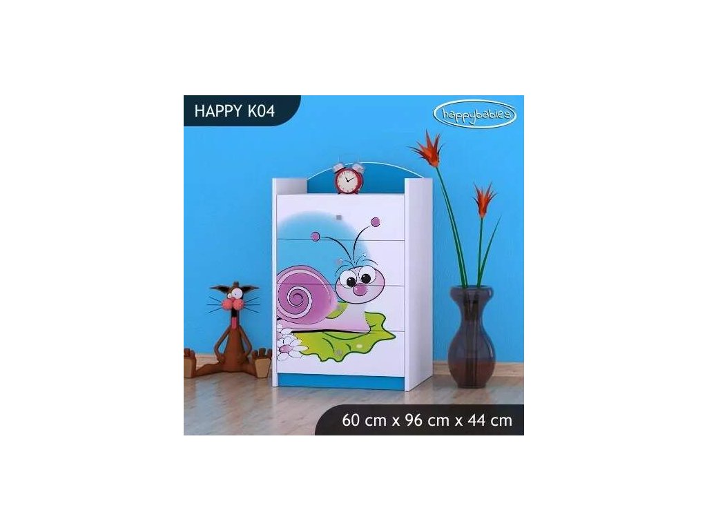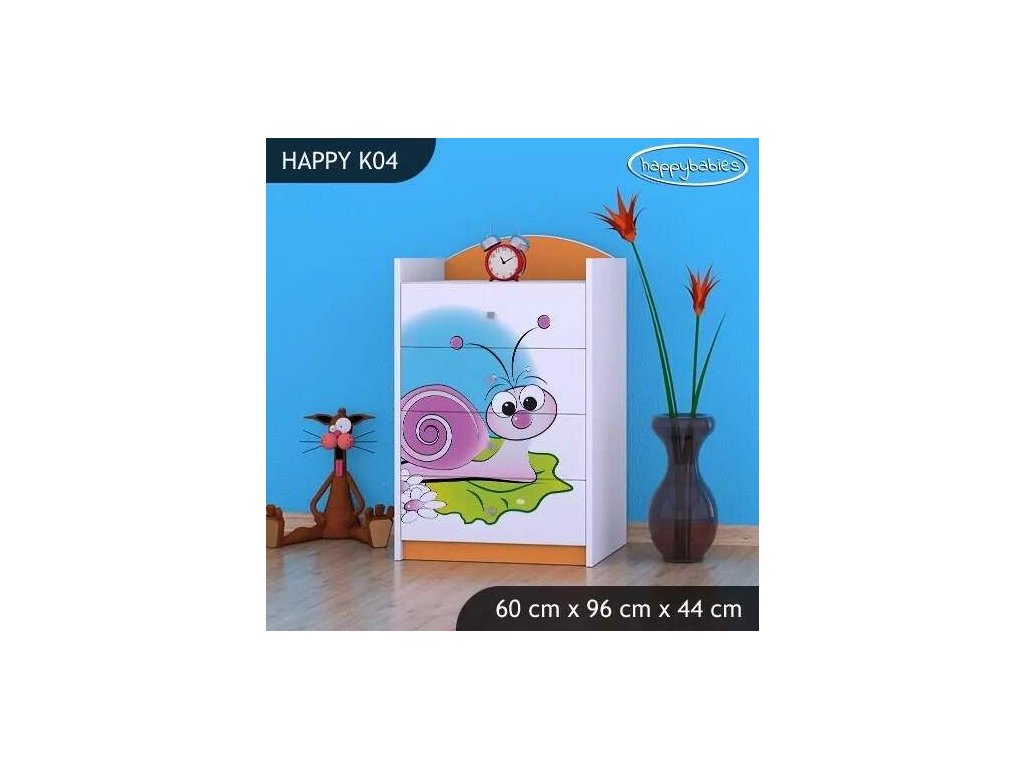 Dětské komody patří k základní výbavě každého pokojíčku. Komody jsou velmi praktické a můžeme je použít jak na oblečení pro děti, tak na hračky nebo knížky. Komoda obsahuje 4 šuplíky. Materiál: lamino 18 mm Barva: růžová, bílá, kaštan wenge, kalvados, buk, hruška, zelená, modrá, oranžová Rozměr: 60 cm x 96 cm x 44 cm Ve stejném motivu si můžete zakoupit také skříň, regál, knihovnu, psací stůl, noční stolek, box na hračky nebo poličku.Buďte první, kdo napíše příspěvek k této položce.