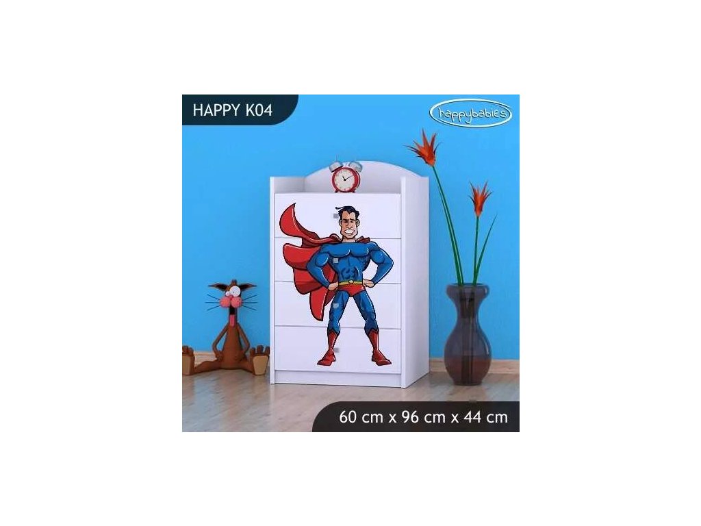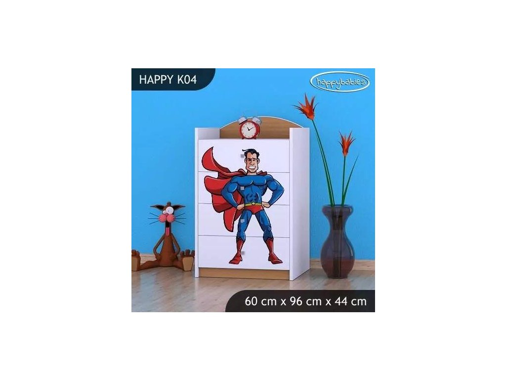 Dětské komody patří k základní výbavě každého pokojíčku. Komody jsou velmi praktické a můžeme je použít jak na oblečení pro děti, tak na hračky nebo knížky. Komoda obsahuje 4 šuplíky. Materiál: lamino 18 mm Barva: růžová, bílá, kaštan wenge, kalvados, buk, hruška, zelená, modrá, oranžová Rozměr: 60 cm x 96 cm x 44 cm Ve stejném motivu si můžete zakoupit také skříň, regál, knihovnu, psací stůl, noční stolek, box na hračky nebo poličku.Buďte první, kdo napíše příspěvek k této položce.