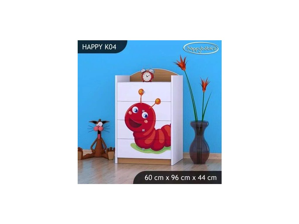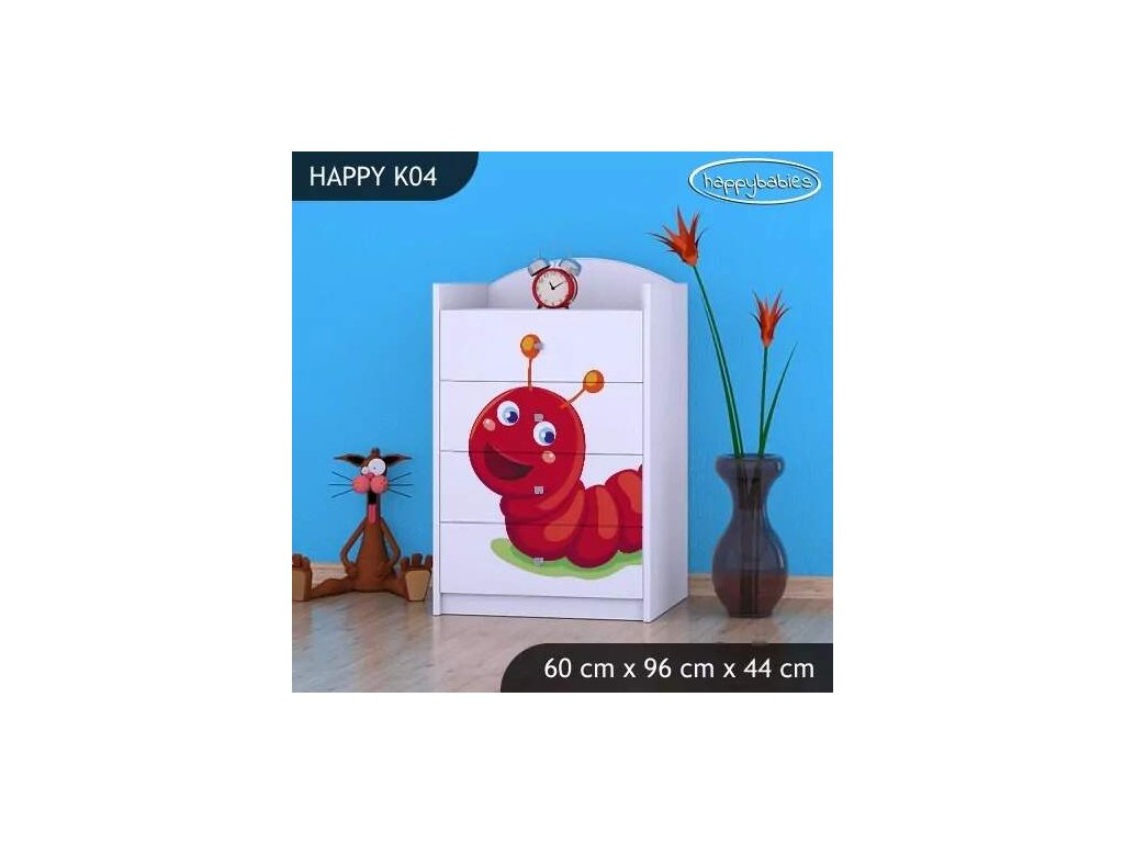 Dětské komody patří k základní výbavě každého pokojíčku. Komody jsou velmi praktické a můžeme je použít jak na oblečení pro děti, tak na hračky nebo knížky. Komoda obsahuje 4 šuplíky. Materiál: lamino 18 mm Barva: růžová, bílá, kaštan wenge, kalvados, buk, hruška, zelená, modrá, oranžová Rozměr: 60 cm x 96 cm x 44 cm Ve stejném motivu si můžete zakoupit také skříň, regál, knihovnu, psací stůl, noční stolek, box na hračky nebo poličku.Buďte první, kdo napíše příspěvek k této položce.