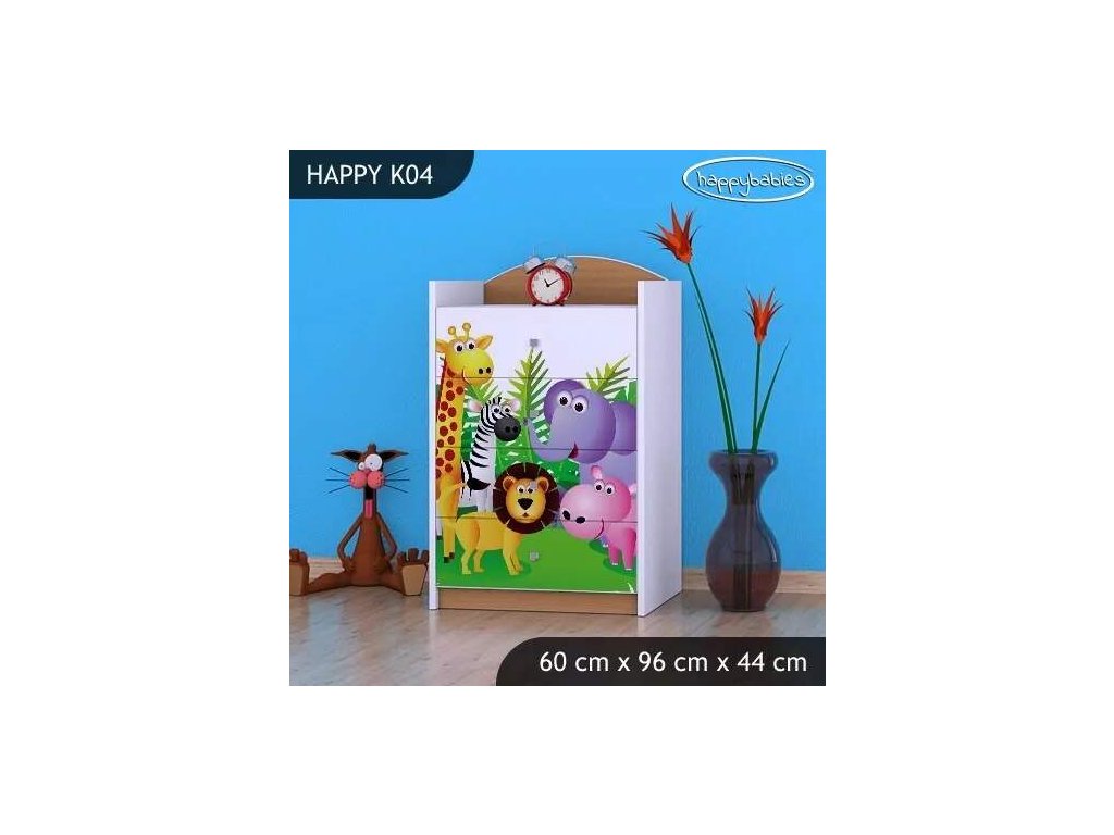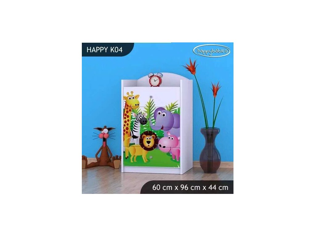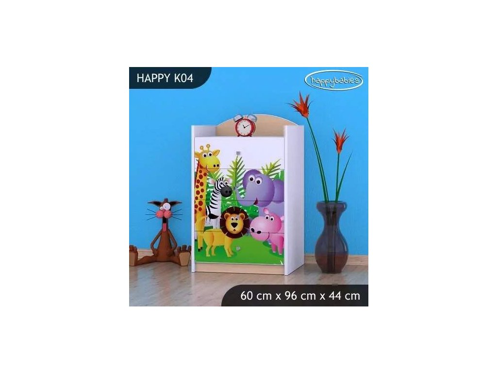 Dětské komody patří k základní výbavě každého pokojíčku. Komody jsou velmi praktické a můžeme je použít jak na oblečení pro děti, tak na hračky nebo knížky. Komoda obsahuje 4 šuplíky. Materiál: lamino 18 mm Barva: růžová, bílá, kaštan wenge, kalvados, buk, hruška, zelená, modrá, oranžová Rozměr: 60 cm x 96 cm x 44 cm Ve stejném motivu si můžete zakoupit také skříň, regál, knihovnu, psací stůl, noční stolek, box na hračky nebo poličku.Buďte první, kdo napíše příspěvek k této položce.