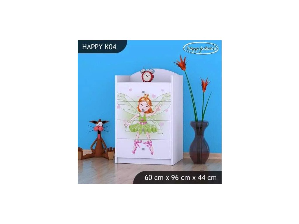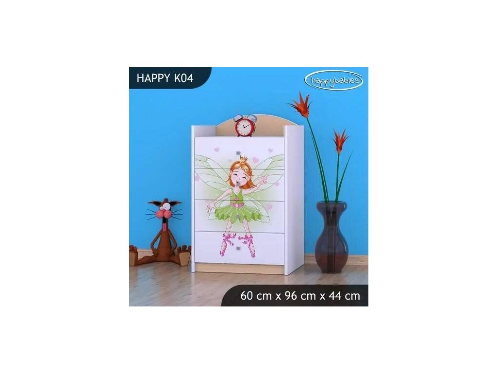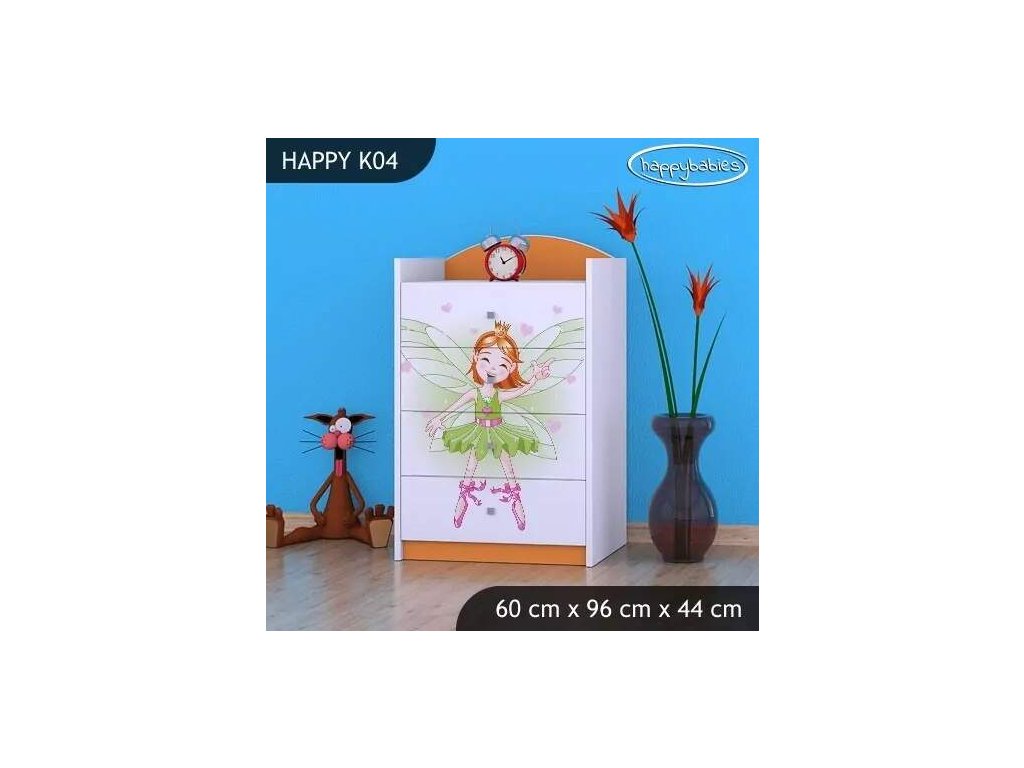 Dětské komody patří k základní výbavě každého pokojíčku. Komody jsou velmi praktické a můžeme je použít jak na oblečení pro děti, tak na hračky nebo knížky. Komoda obsahuje 4 šuplíky. Materiál: lamino 18 mm Barva: růžová, bílá, kaštan wenge, kalvados, buk, hruška, zelená, modrá, oranžová Rozměr: 60 cm x 96 cm x 44 cm Ve stejném motivu si můžete zakoupit také skříň, regál, knihovnu, psací stůl, noční stolek, box na hračky nebo poličku.Buďte první, kdo napíše příspěvek k této položce.