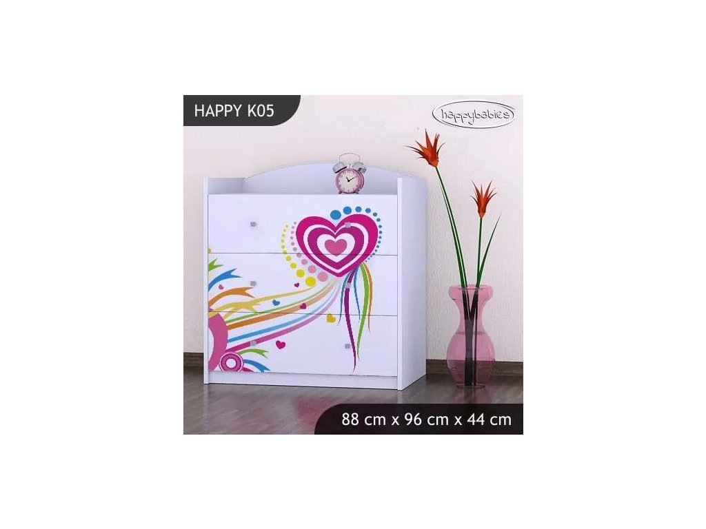 Dětské komody patří k základní výbavě každého pokojíčku. Komody jsou velmi praktické a můžeme je použít jak na oblečení pro děti, tak na hračky nebo knížky. Komoda obsahuje 3 šuplíky. Materiál: lamino 18 mm Barva: růžová, bílá, kaštan wenge, kalvados, buk, hruška, zelená, modrá, oranžová Rozměr: 88 cm x 96 cm x 44 cm Ve stejném motivu si můžete zakoupit také skříň, regál, knihovnu, psací stůl, noční stolek, box na hračky nebo poličku.Buďte první, kdo napíše příspěvek k této položce.