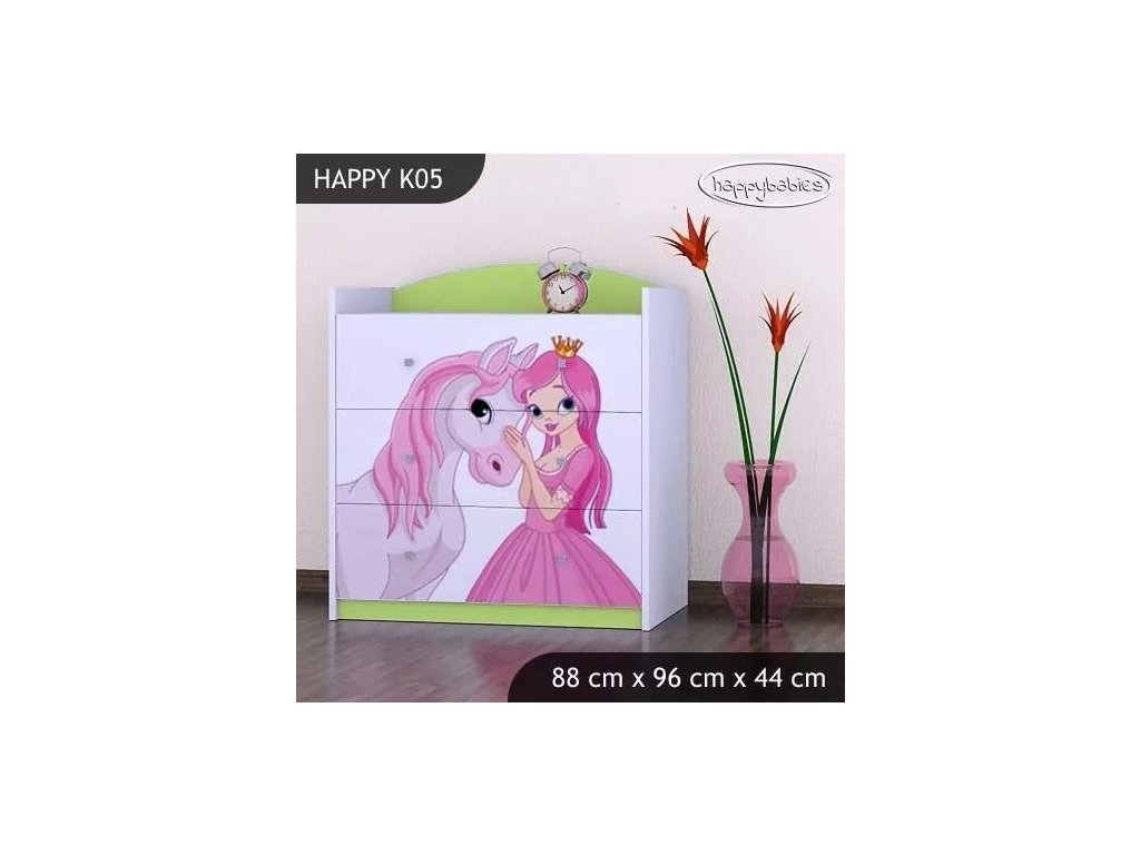 Dětské komody patří k základní výbavě každého pokojíčku. Komody jsou velmi praktické a můžeme je použít jak na oblečení pro děti, tak na hračky nebo knížky. Komoda obsahuje 3 šuplíky. Materiál: lamino 18 mm Barva: růžová, bílá, kaštan wenge, kalvados, buk, hruška, zelená, modrá, oranžová Rozměr: 88 cm x 96 cm x 44 cm Ve stejném motivu si můžete zakoupit také skříň, regál, knihovnu, psací stůl, noční stolek, box na hračky nebo poličku.Buďte první, kdo napíše příspěvek k této položce.