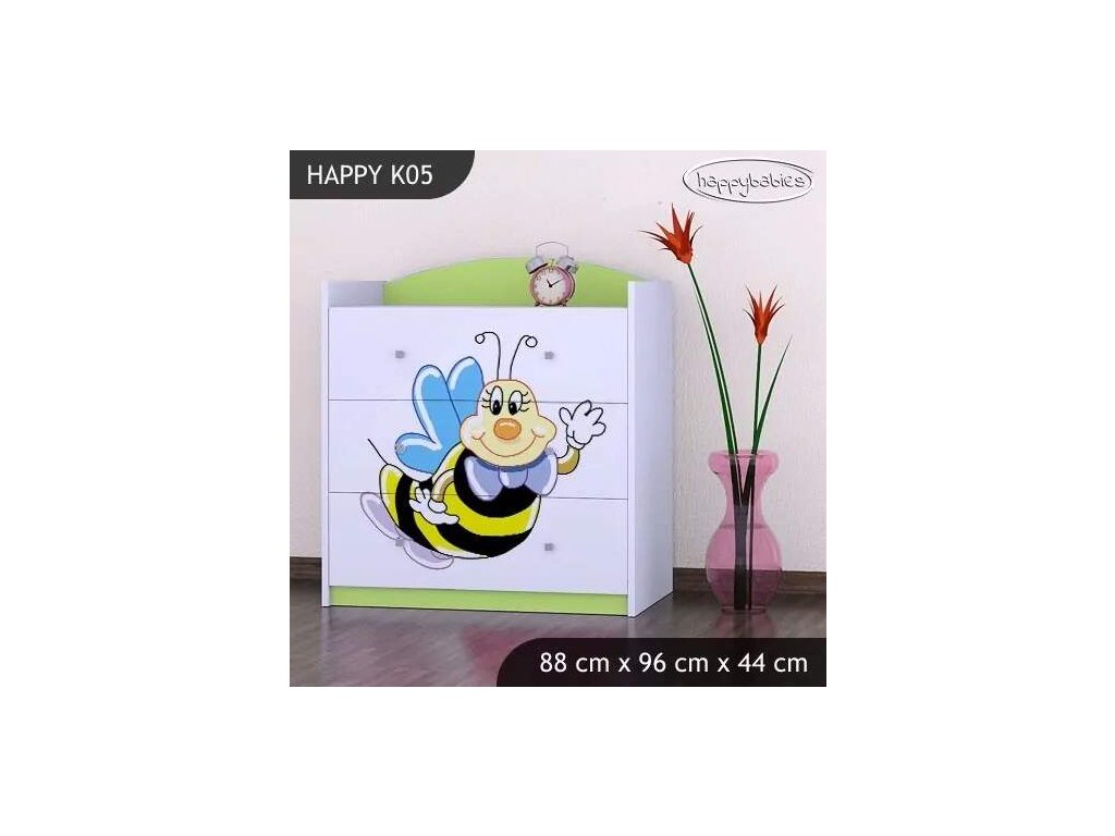 Dětské komody patří k základní výbavě každého pokojíčku. Komody jsou velmi praktické a můžeme je použít jak na oblečení pro děti, tak na hračky nebo knížky. Komoda obsahuje 3 šuplíky. Materiál: lamino 18 mm Barva: růžová, bílá, kaštan wenge, kalvados, buk, hruška, zelená, modrá, oranžová Rozměr: 88 cm x 96 cm x 44 cm Ve stejném motivu si můžete zakoupit také skříň, regál, knihovnu, psací stůl, noční stolek, box na hračky nebo poličku.Buďte první, kdo napíše příspěvek k této položce.