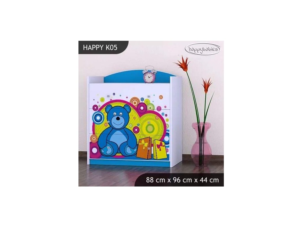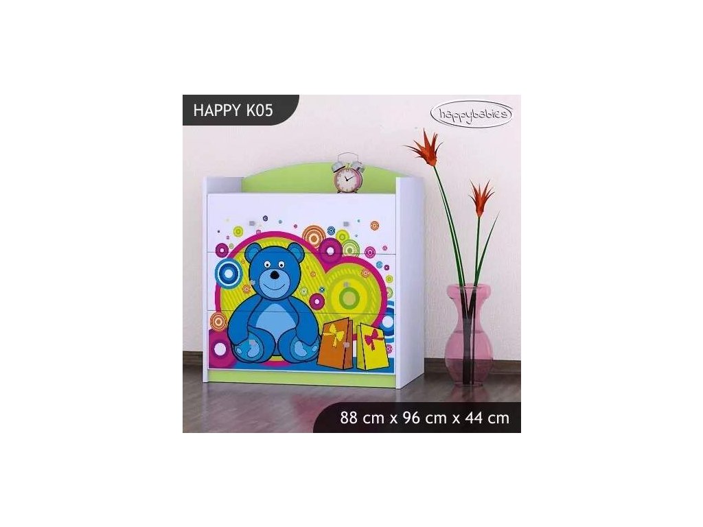 Dětské komody patří k základní výbavě každého pokojíčku. Komody jsou velmi praktické a můžeme je použít jak na oblečení pro děti, tak na hračky nebo knížky. Komoda obsahuje 3 šuplíky. Materiál: lamino 18 mm Barva: růžová, bílá, kaštan wenge, kalvados, buk, hruška, zelená, modrá, oranžová Rozměr: 88 cm x 96 cm x 44 cm Ve stejném motivu si můžete zakoupit také skříň, regál, knihovnu, psací stůl, noční stolek, box na hračky nebo poličku.Buďte první, kdo napíše příspěvek k této položce.