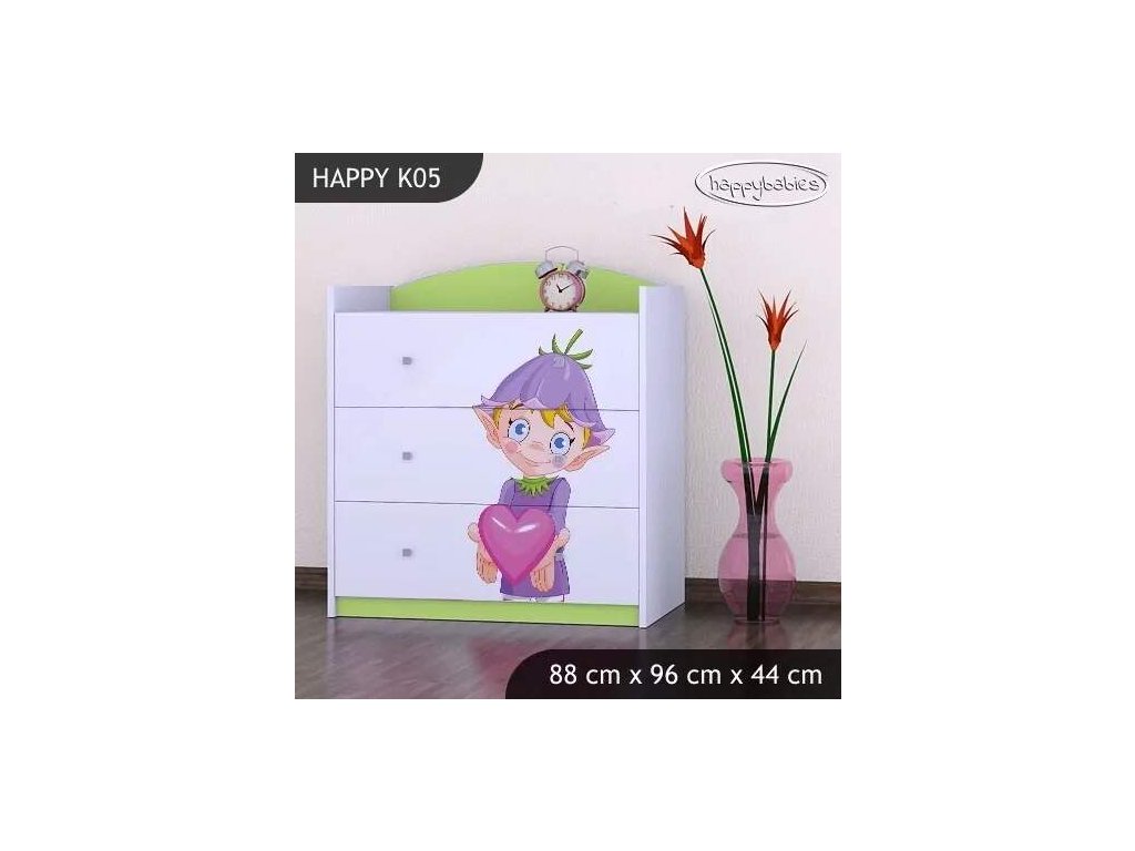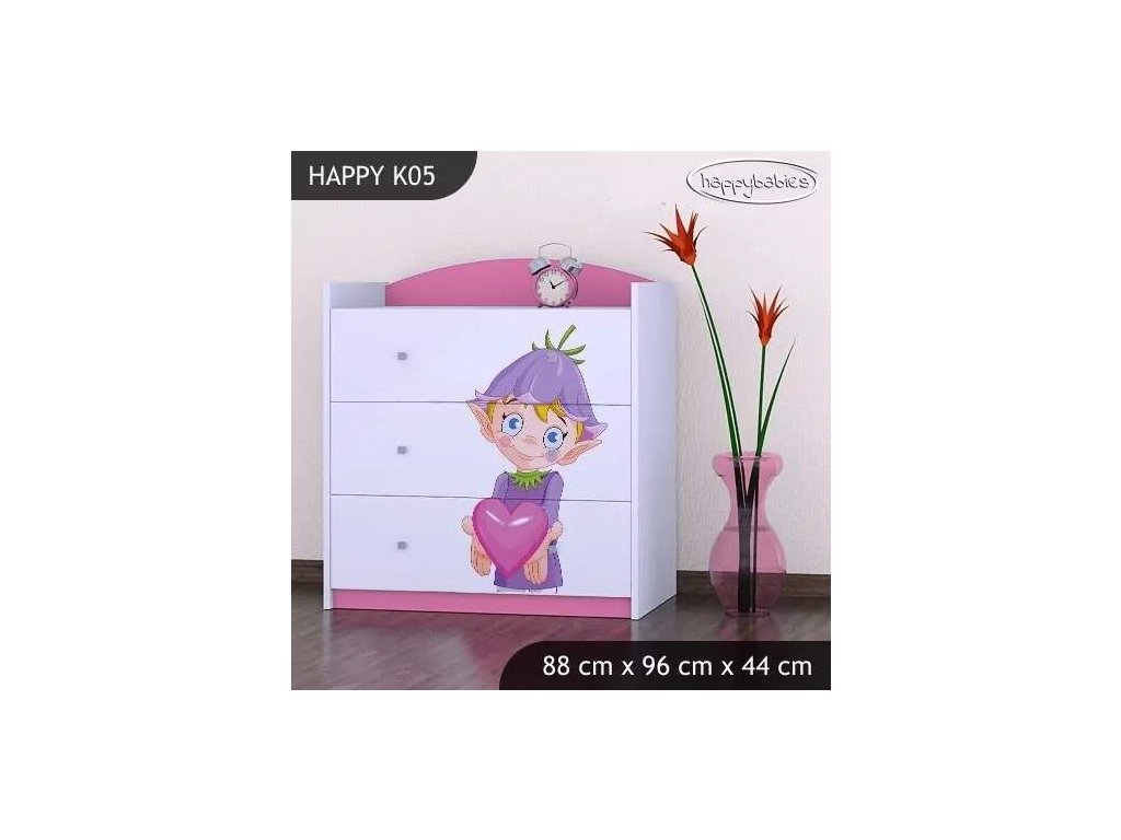 Dětské komody patří k základní výbavě každého pokojíčku. Komody jsou velmi praktické a můžeme je použít jak na oblečení pro děti, tak na hračky nebo knížky. Komoda obsahuje 3 šuplíky. Materiál: lamino 18 mm Barva: růžová, bílá, kaštan wenge, kalvados, buk, hruška, zelená, modrá, oranžová Rozměr: 88 cm x 96 cm x 44 cm Ve stejném motivu si můžete zakoupit také skříň, regál, knihovnu, psací stůl, noční stolek, box na hračky nebo poličku.Buďte první, kdo napíše příspěvek k této položce.