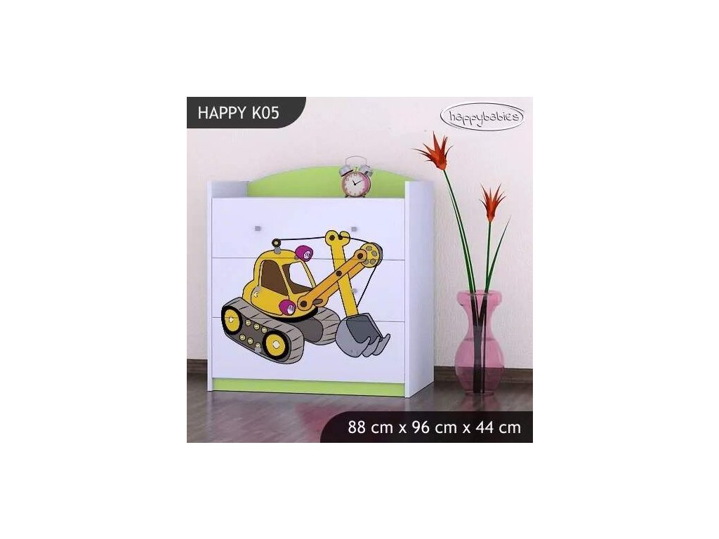 Dětské komody patří k základní výbavě každého pokojíčku. Komody jsou velmi praktické a můžeme je použít jak na oblečení pro děti, tak na hračky nebo knížky. Komoda obsahuje 3 šuplíky. Materiál: lamino 18 mm Barva: růžová, bílá, kaštan wenge, kalvados, buk, hruška, zelená, modrá, oranžová Rozměr: 88 cm x 96 cm x 44 cm Ve stejném motivu si můžete zakoupit také skříň, regál, knihovnu, psací stůl, noční stolek, box na hračky nebo poličku.Buďte první, kdo napíše příspěvek k této položce.